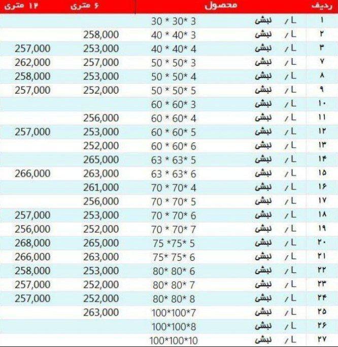 #آریان_فولاد نبشی 3*۴ »»261500««« نبشی ۴*۴ »»»250500««« نبشی ۴*۵ »»»250500««« نبشی ۵*۵ »»»250500««« نبشی ۶*۶ »»» 250500««« نبشی ۷*۷ »»»250500««« نبشی ۸*۸»»»250 ...