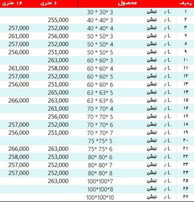 #آریان_فولادنبشی 3*۴ »»264500««« نبشی ۴*۴ »»»253500««« نبشی ۴*۵ »»»253500««« نبشی ۵*۵ »»»253500««« نبشی ۶*۶ »»» 253500««« نبشی ۷*۷ »»»253500««« نبشی ۸*۸»»»25350 ...