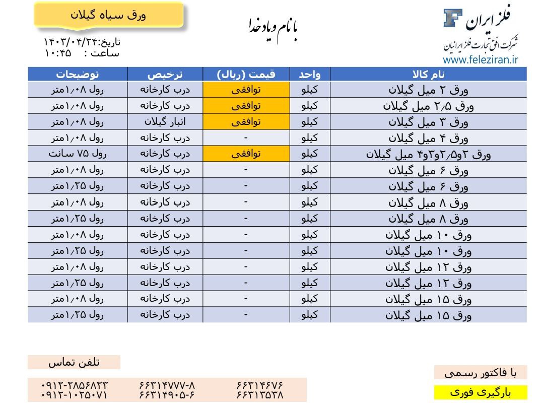 Web Site : www.feleziran.ir Ceo : m.abdinezhad tel: 021-66314777-8 66314676 66313538 66314905-6