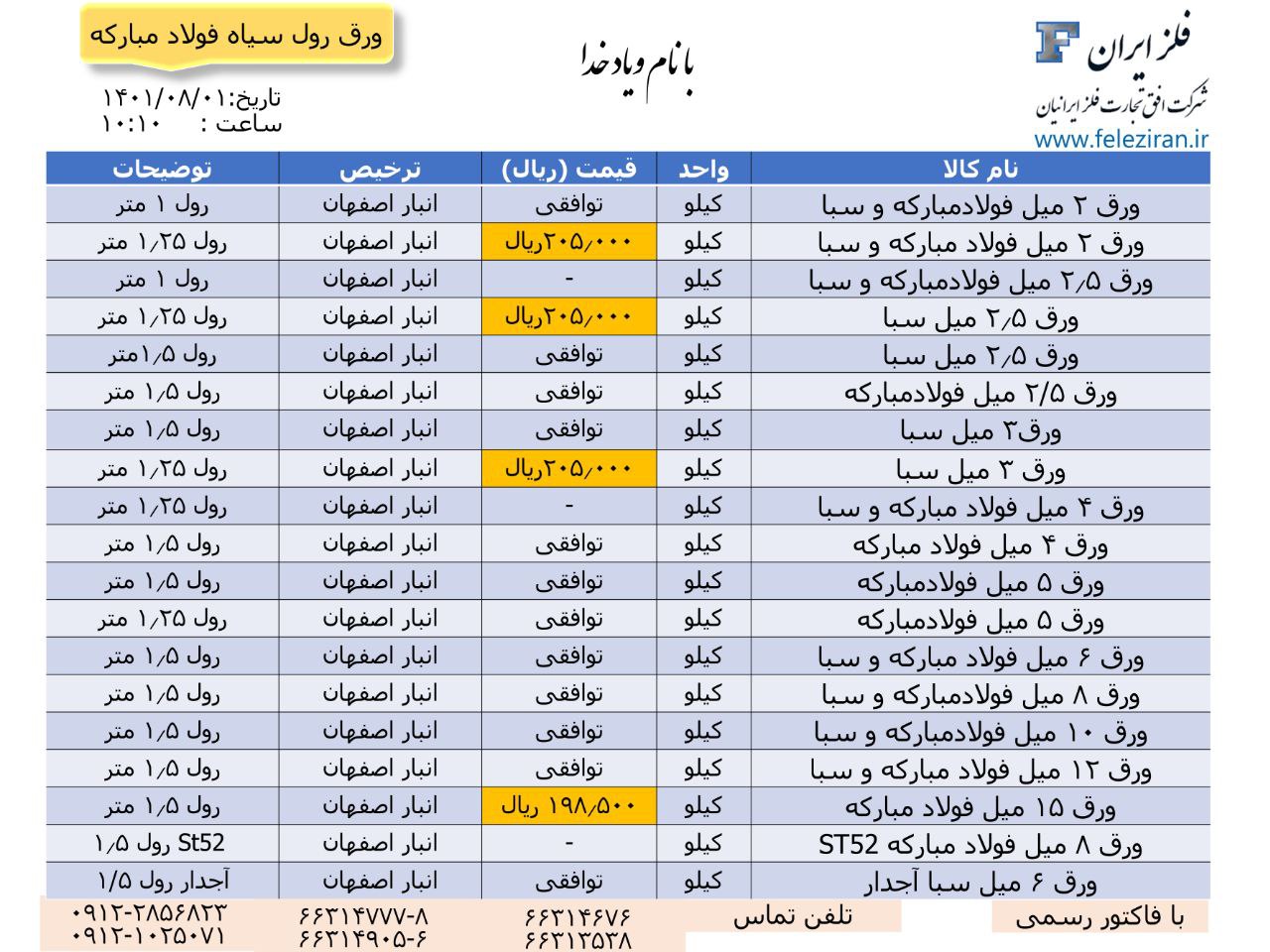 لیست قیمت ورق رول سیاه فولاد مبارکه