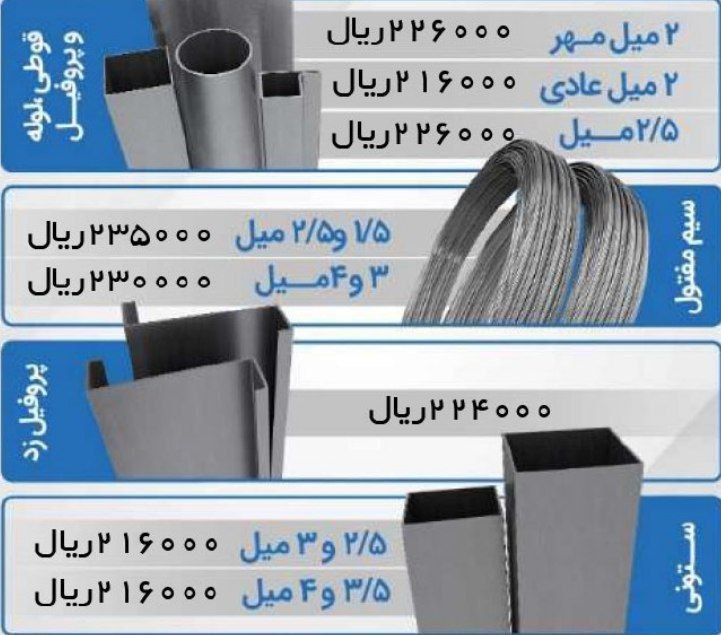 فولاد صائب 8 : 171000 10-12 : 168000 14-25 : 165000 ثابت تخفیف دارد