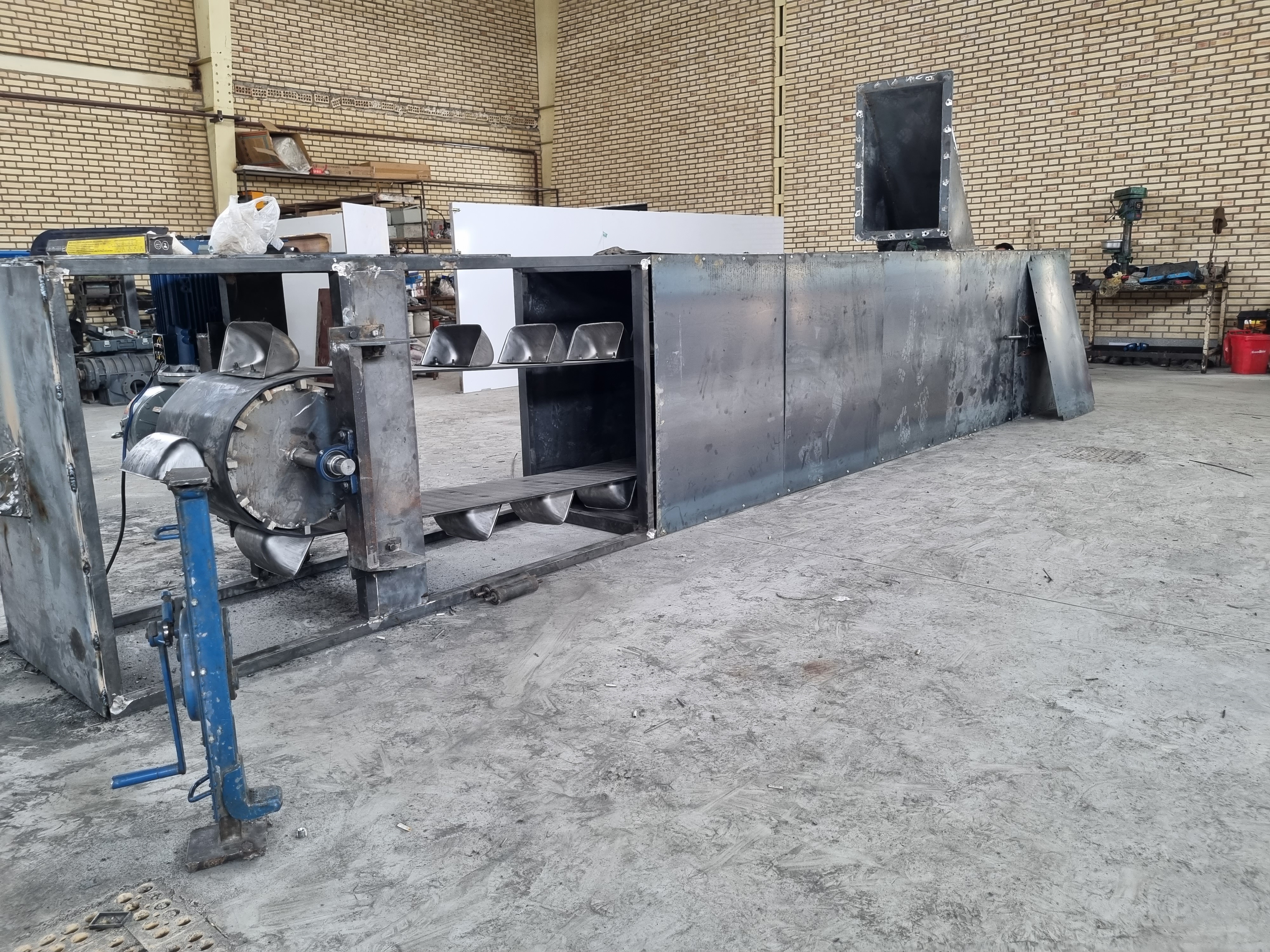 باکت الواتور :ظرفیت دستگاه باکت الواتور با چگال ماده ۵۰۰ کیلوگرم در متر مکعب ۳۰۰ کیلوگرم در ساعت می باشد فاصله شارژ و تخلیه ۴.۵ متر با الکترو موتور ۱۱ کیلو وات موتوژن و گیربکس ایرانی تسمه EP500 با ضخامت ۱۰ میلی متر و عرض ۵۰ سانتی متر عرض باکت ها ۳۰ سانتی متر آماده تحویل محل کارخانه تبریز دارای ۶ کاه گارانتی