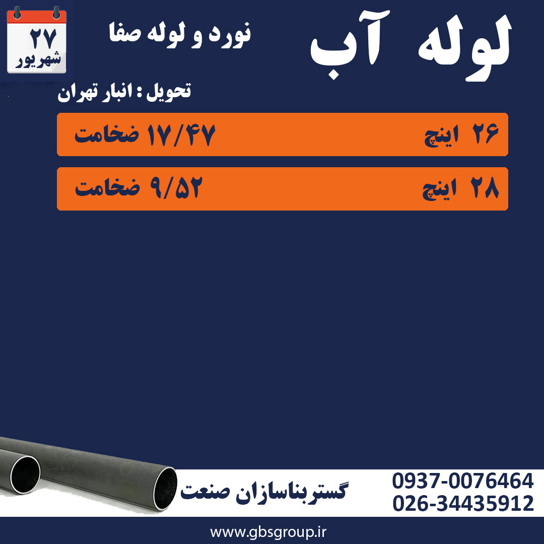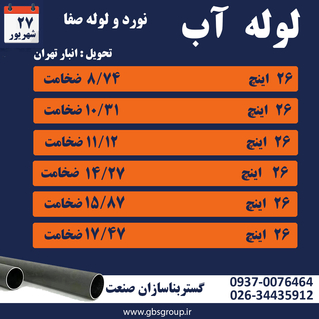 لوله های سایز بالا آب 12 اینچ 16 اینچ 26 اینچ 28 اینچ تولید : شرکت نورد و لوله صفا نماینده رسمی فروش تماس جهت استعلام قیمت 09370076464 ( فرهنگ ) 0263 ...
