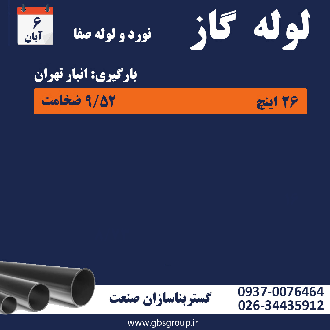 📆 ۱۴۰۲/۰۸/۰۸ دوشنبه ⭕ لوله گاز - درز جوش ⭕ 🎖نماینده رسمی برند : نورد و پروفیل ساوه 🏗️ محل تحویل : انبار تهران 📢جهت استعلام قیمت تماس بگیرید 📳0937-0076 ...