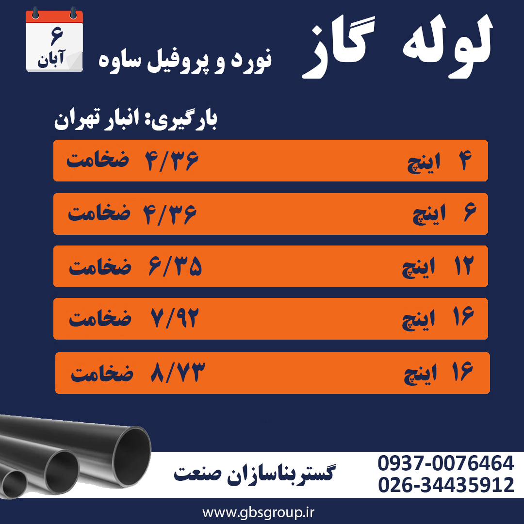 📆 ۱۴۰۲/۰۸/۰۶ شنبه ⭕ لوله گاز - درز جوش ⭕ 🎖نماینده رسمی برند : نورد و پروفیل ساوه 🏗️ محل تحویل : انبار تهران 📢جهت استعلام قیمت تماس بگیرید 📳0937-00 ...