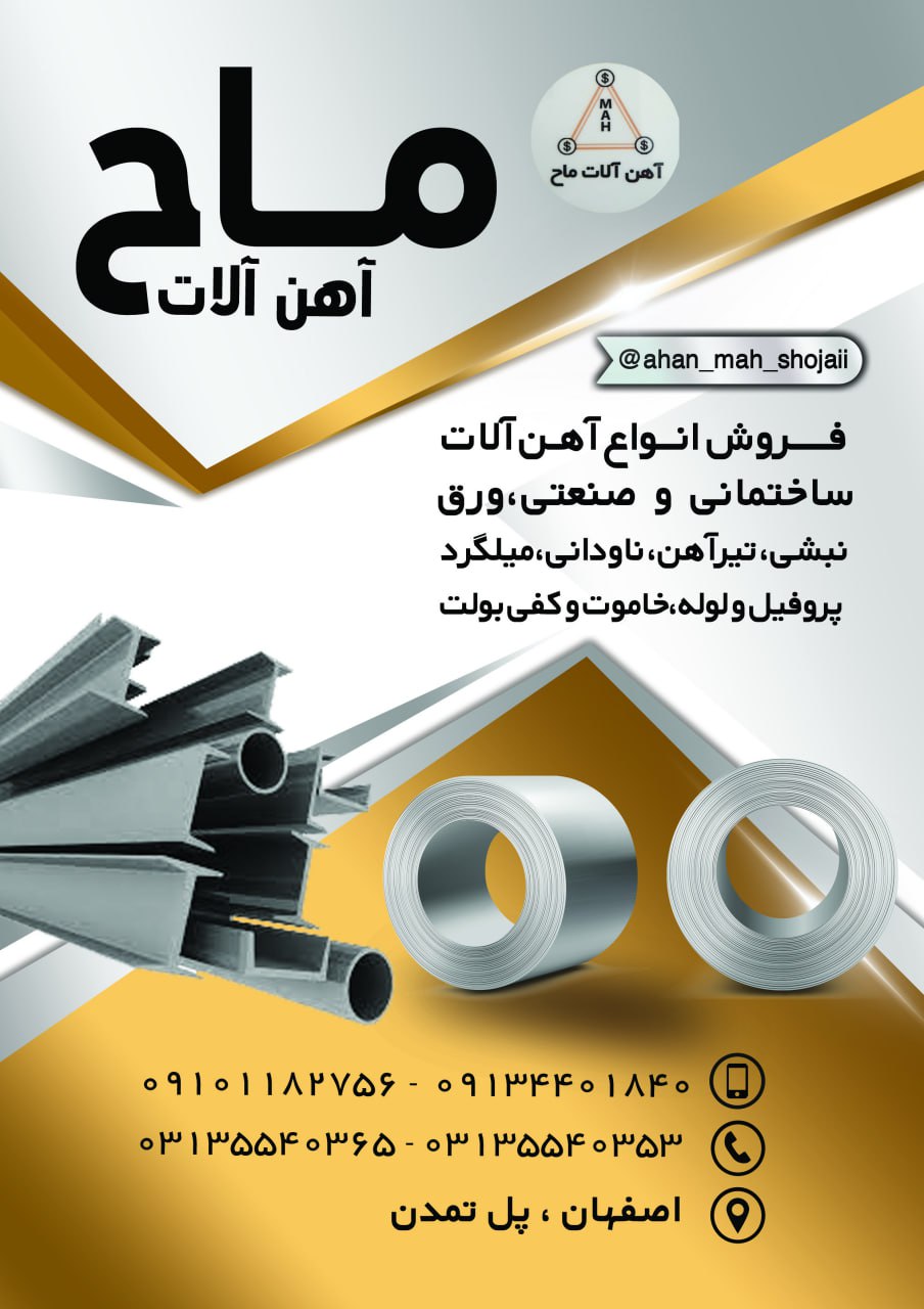 #آهن_آلات_ماح فروش انواع آهن آلات ساختمانی و صنعتی ورق نبشی تیر آهن ناودانی میلگرد پروفیل و لوله خاموت-کفی بولت ☎️031355403 ...