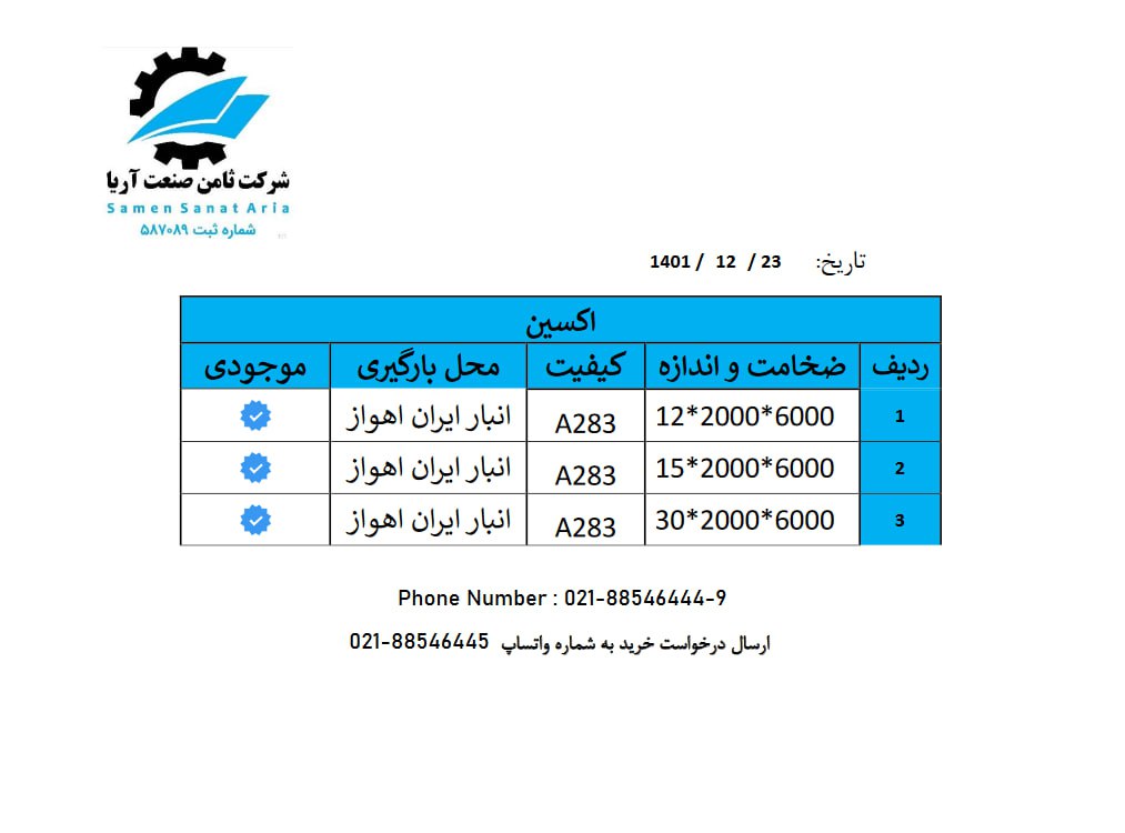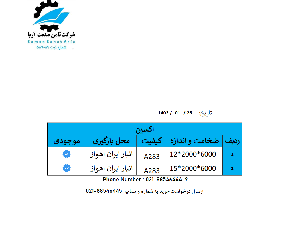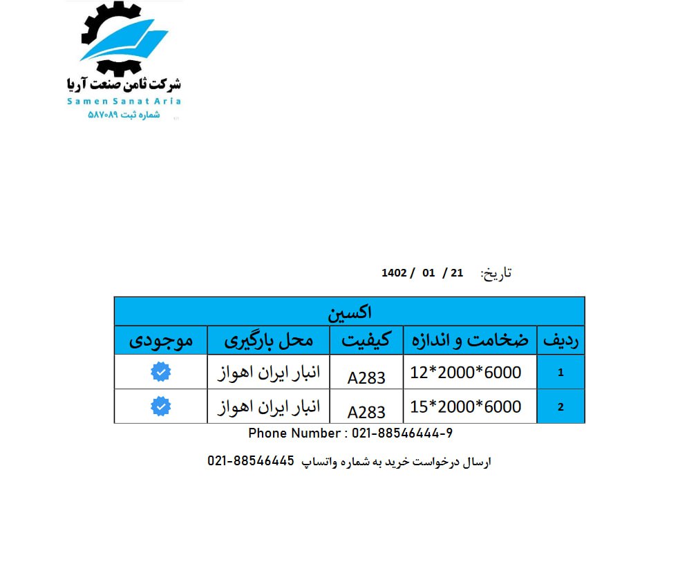 💠 تولیدی بازرگانی #ثامن_صنعت_آریا با ۲۰ سال تجربه در عرضه مستقیم محصولات فولادی ارائه انواع: ✅ورق گرم مبارکه، اکسین،کاویان ،گیلان ✅ ورق گالوانیزه و رنگی ...