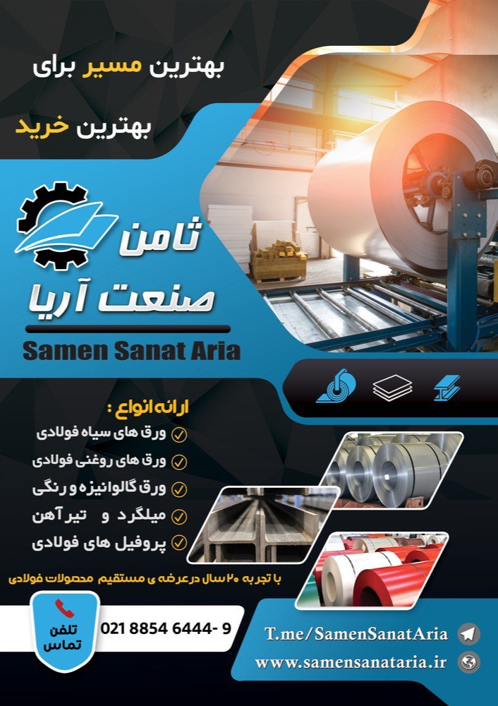 💠 تولیدی بازرگانی #ثامن_صنعت_آریابا ۲۰ سال تجربه در عرضه مستقیم محصولات فولادیارائه انواع: ✅ورق گرم مبارکه، اکسین،کاویان ،گیلان ✅ ورق گالوانیزه و رنگی و رو ...