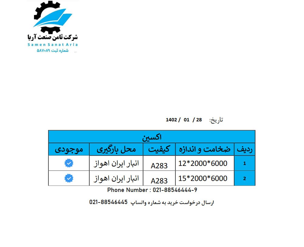 💠 تولیدی بازرگانی #ثامن_صنعت_آریا با ۲۰ سال تجربه در عرضه مستقیم محصولات فولادیارائه انواع: ✅ورق گرم مبارکه، اکسین،کاویان ،گیلان ✅ ورق گالوانیزه و رنگی و ر ...