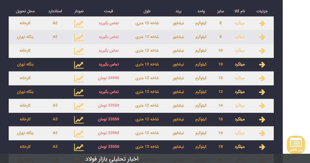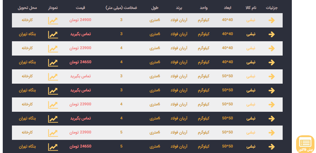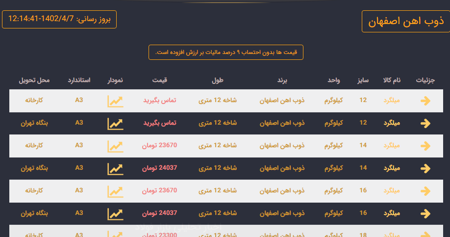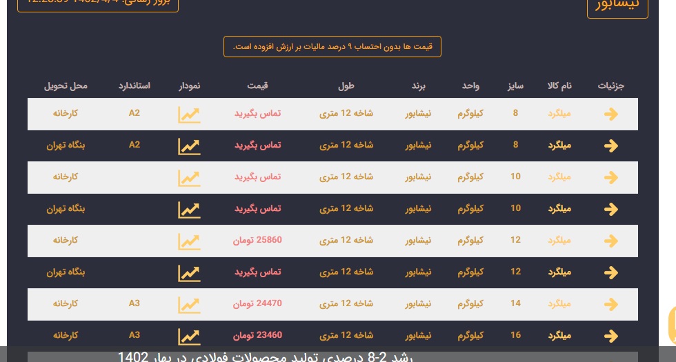 اعلام موجودی میلگرد آجدار آنلاین سازه
