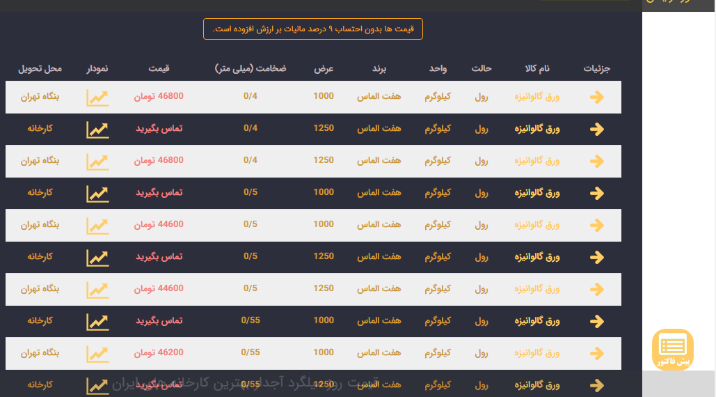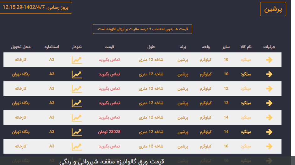 اعلام موجودی ورق گالوانیزه و رنگی آنلاین سازه