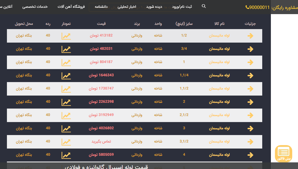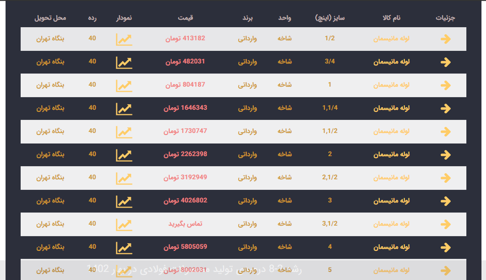 اعلام موجودی لوله مانیسمان آنلاین سازه
