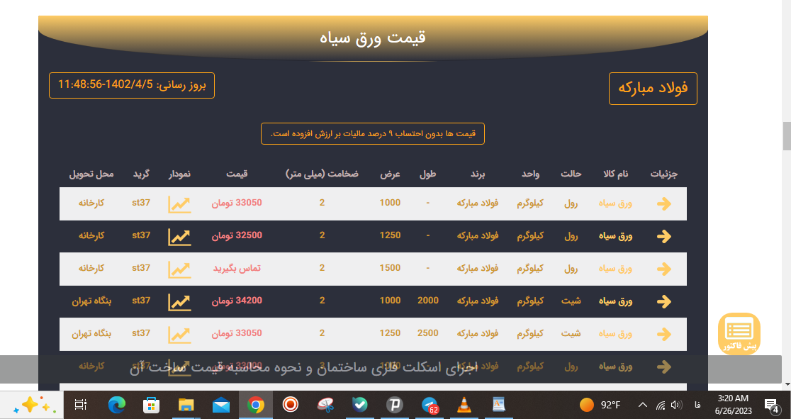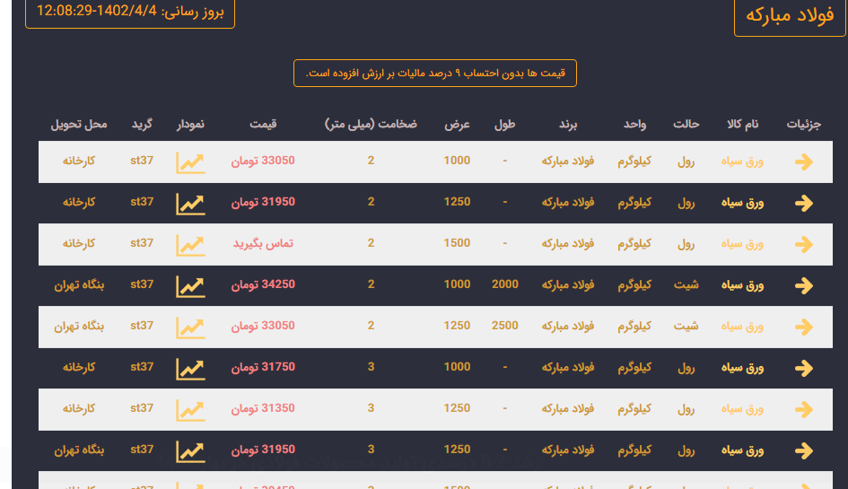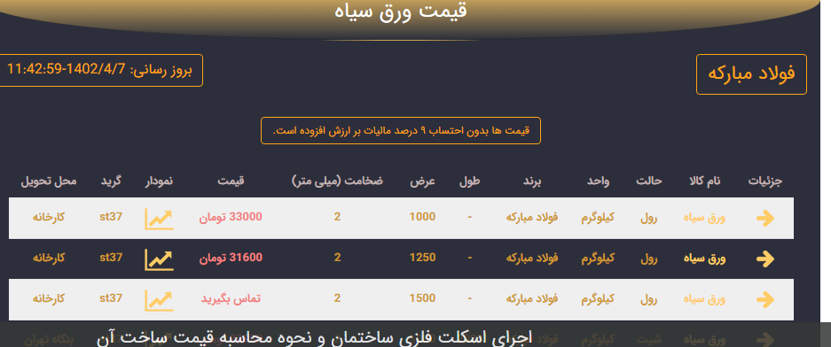 اعلام موجودی ورق گرم (سیاه) آنلاین سازه