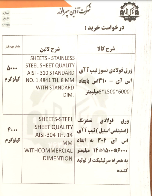 خریدار ورق های فولادی با مشخصات تصویر هستیم.