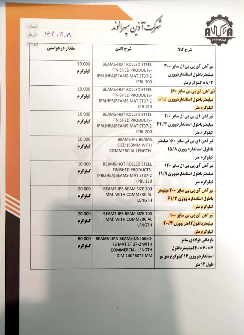 خریدار تیرآهن با مشخصات عکس هستیم.