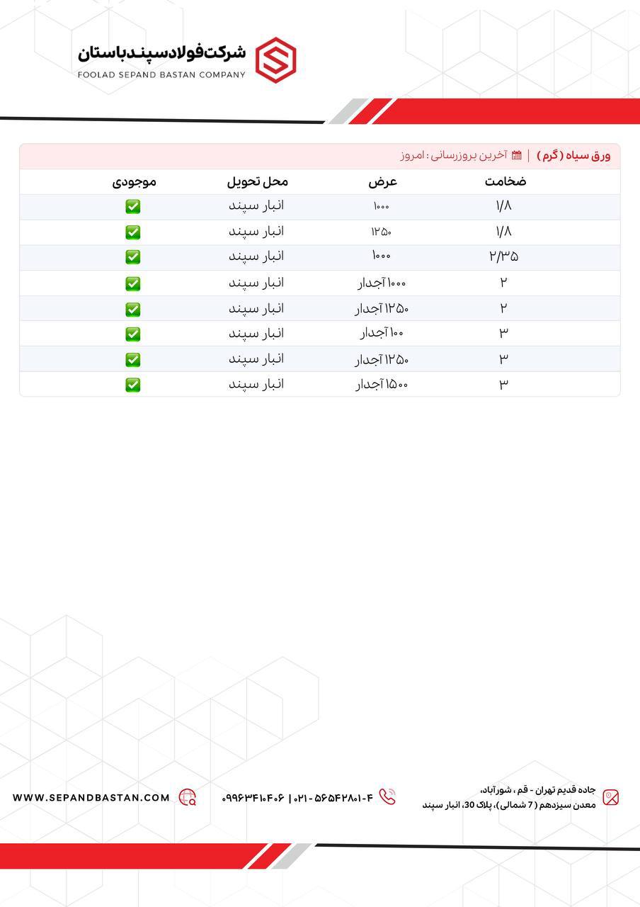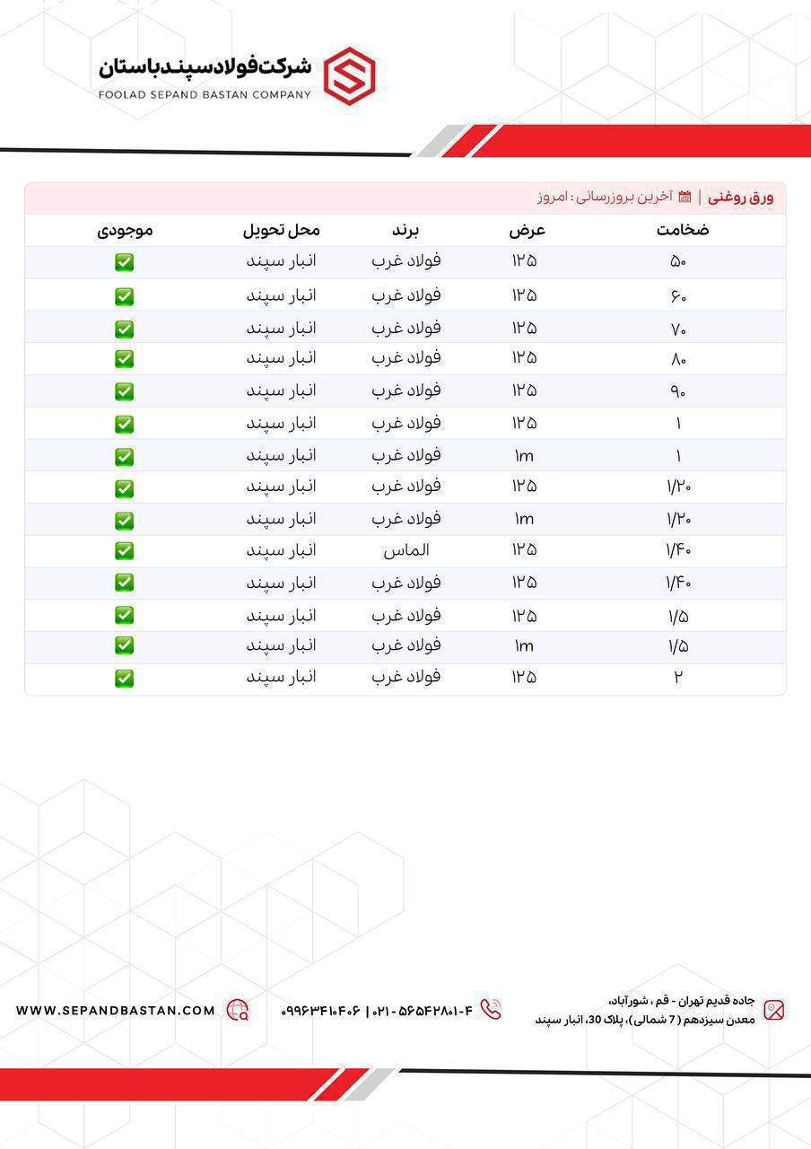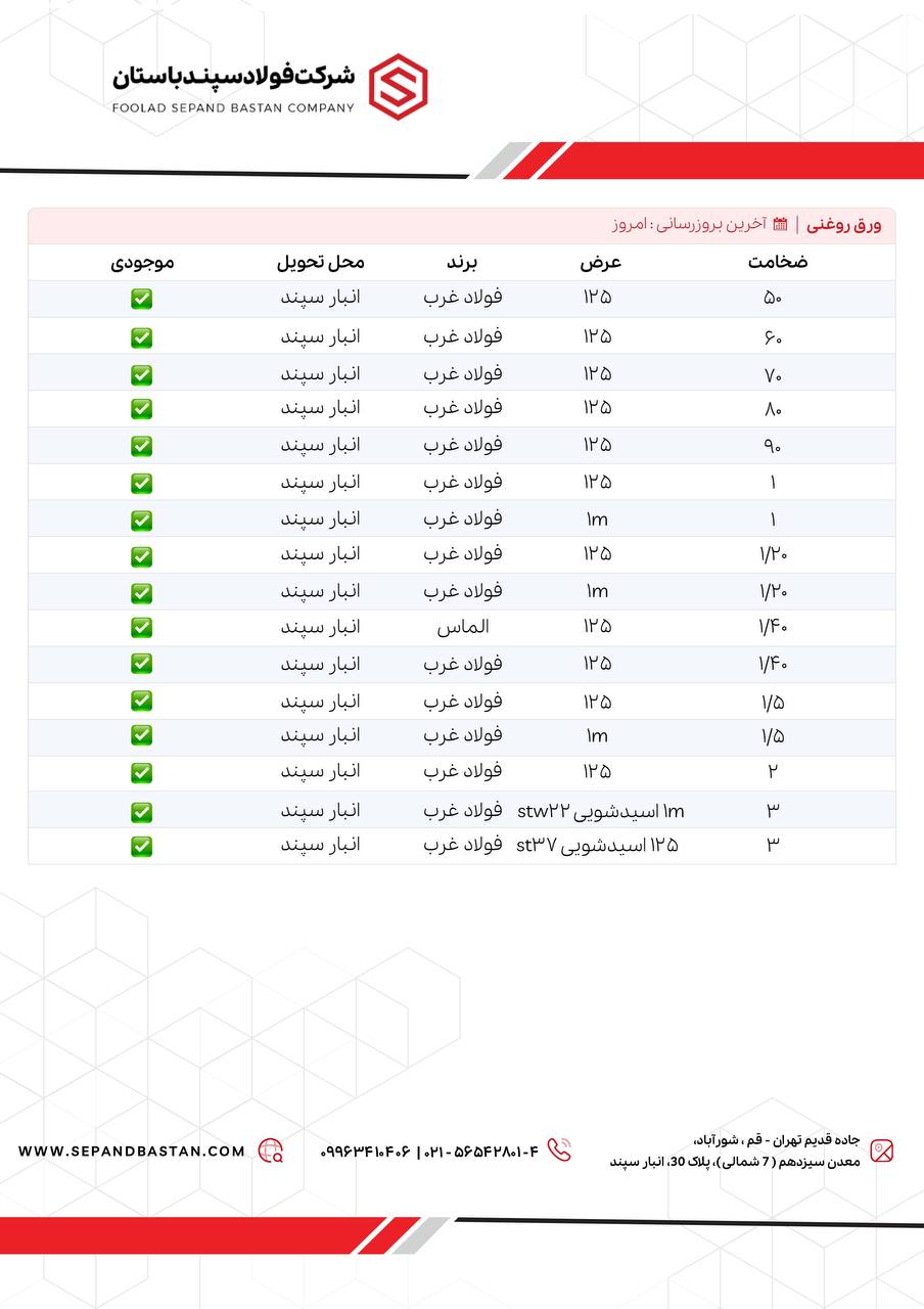 موجودی ورق گالوانیزه بصورت فایل ضمیمه قرار گرفته است