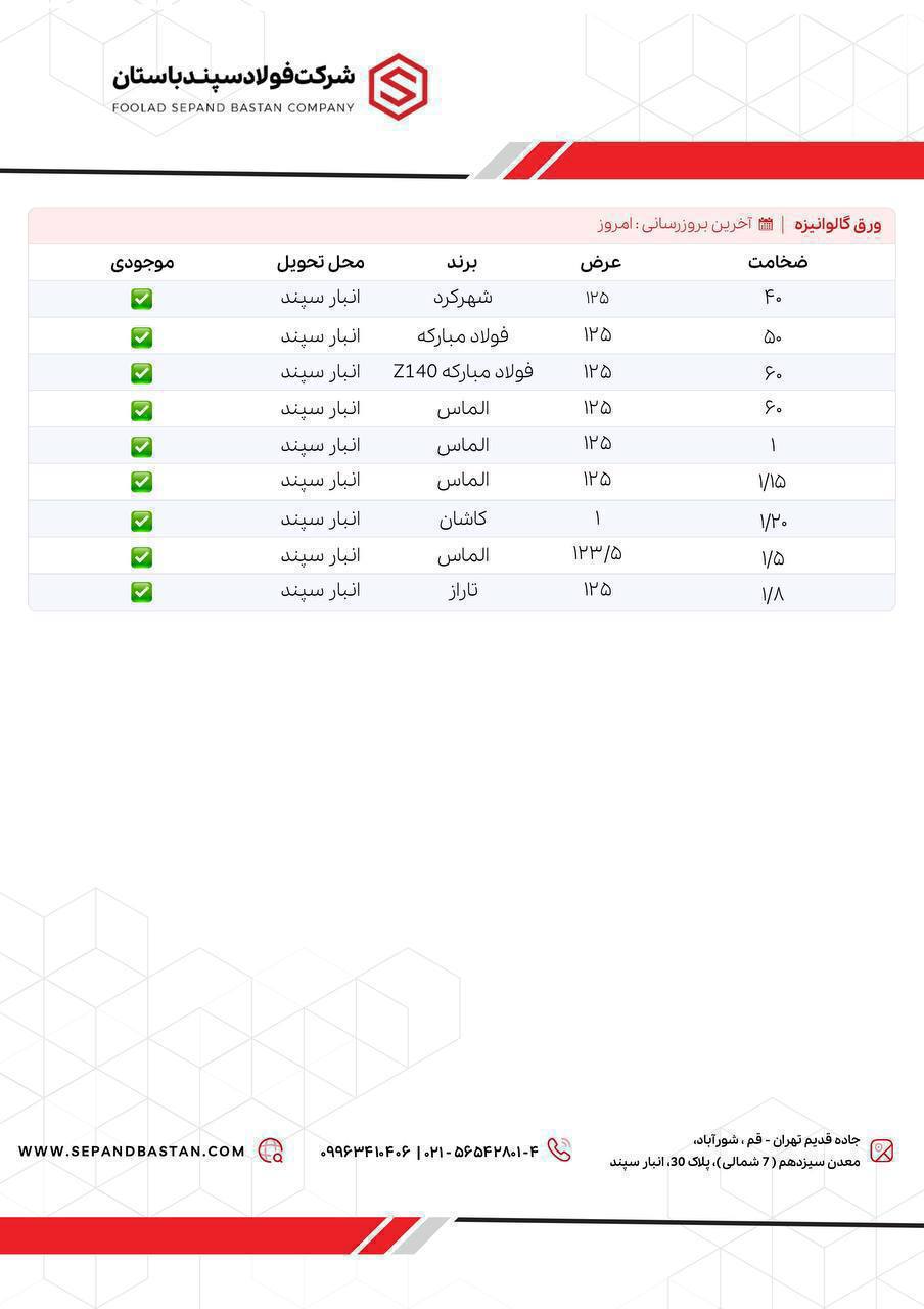 ⚜️#فولاد_سپند_باستان ⚜️🌀عرضه کننده انواع ورق های فولادی ✅ ورق سیاه ✅ ورق روغنی ✅ ورق گالوانیزه و رنگی 💢برای اطلاع از قیمتها تماس بگیرید .📱 تلفن های واحد فروش: ...
