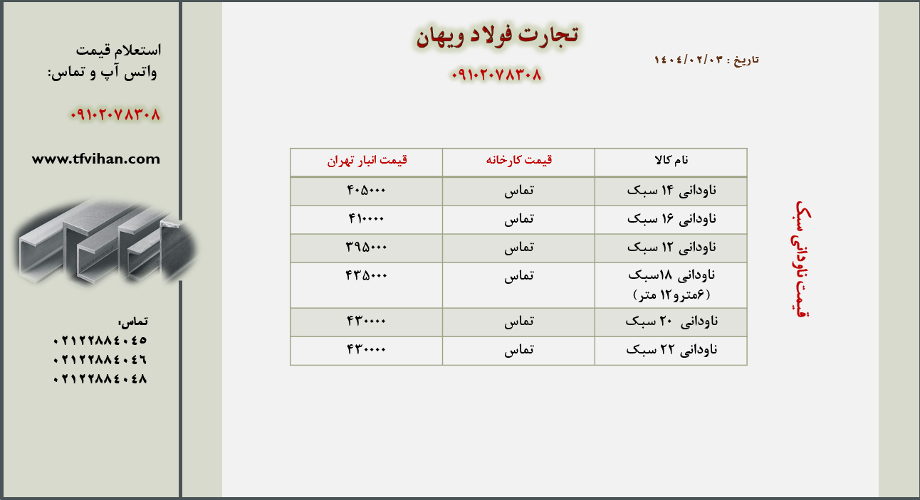 💫 هو الرزاق 💫 ⚜️ تجارت فولاد ويهان ⚜️ قیمت انواع ناودانی موجود كارخانه و انبار تهران 1404/02/03 ♣️ ناودانى سبك♣️ ♣️ناودانى سبك♣️ ♣️ناودانى سبك♣️ استعلا ...