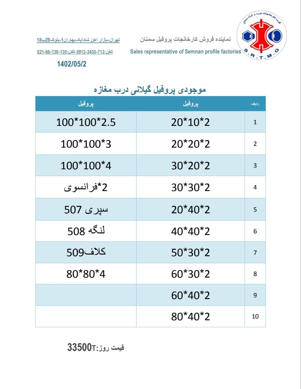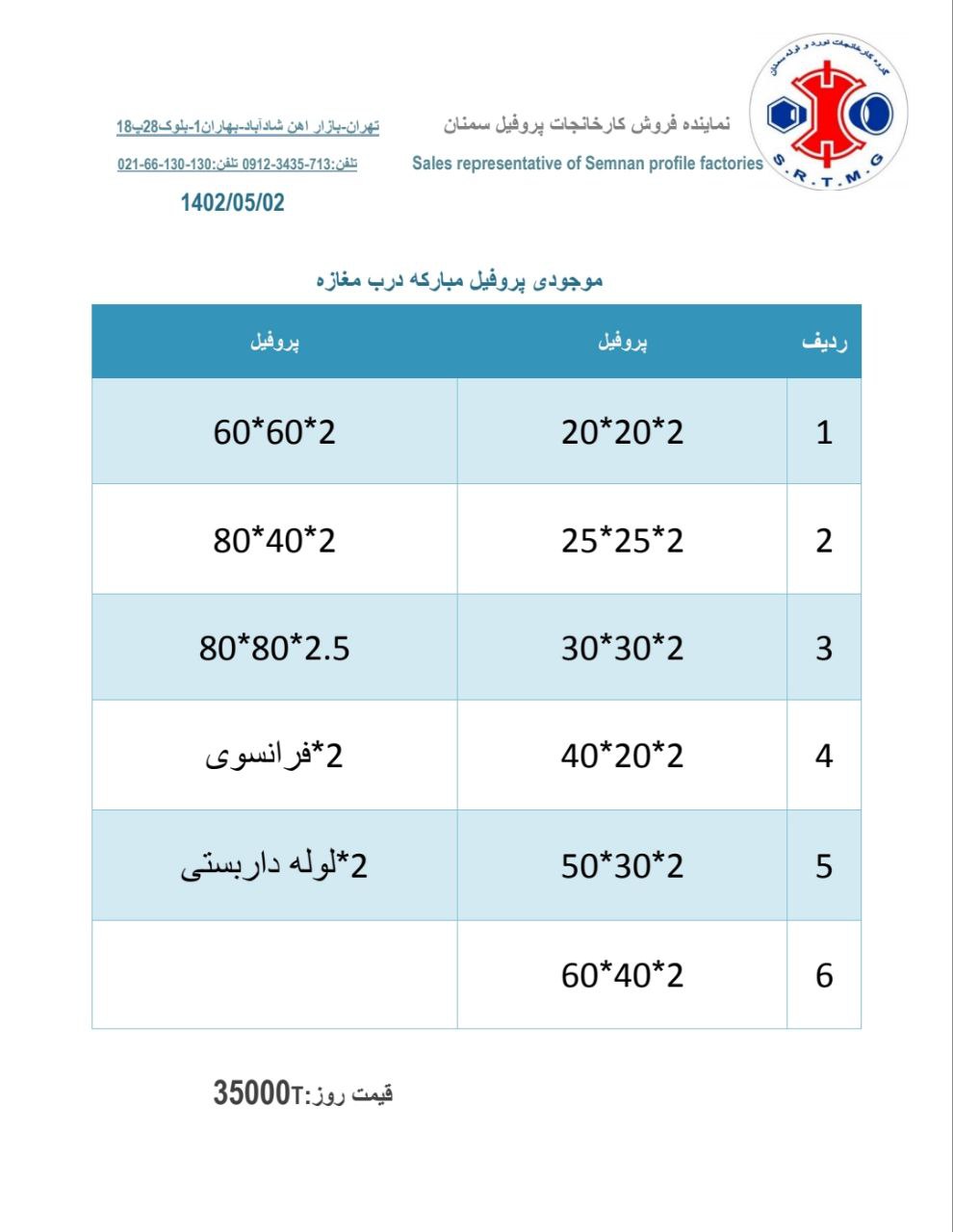 قیمتهای کارا فلز سرمد