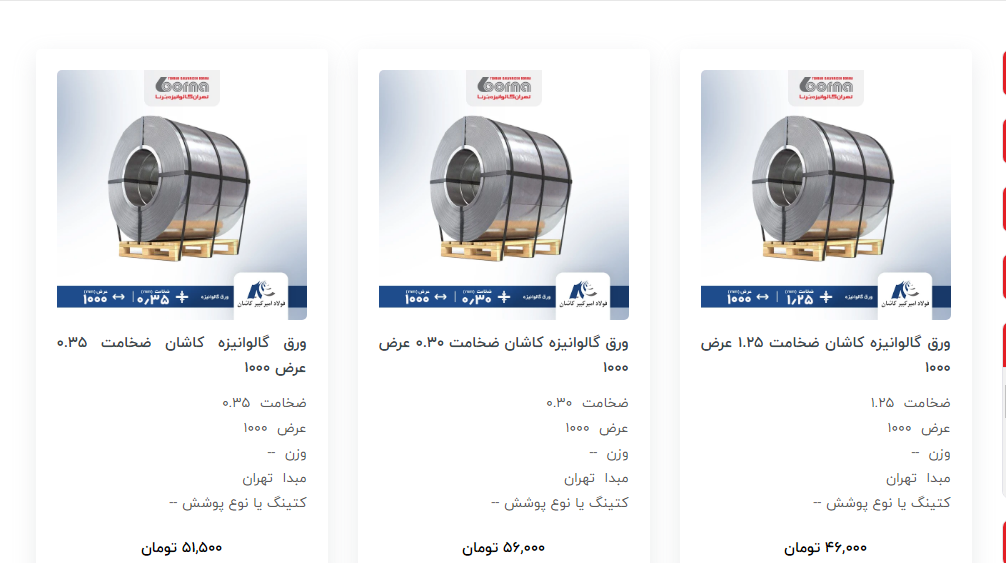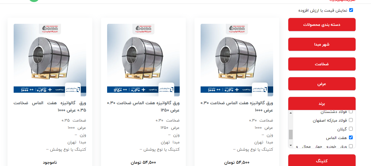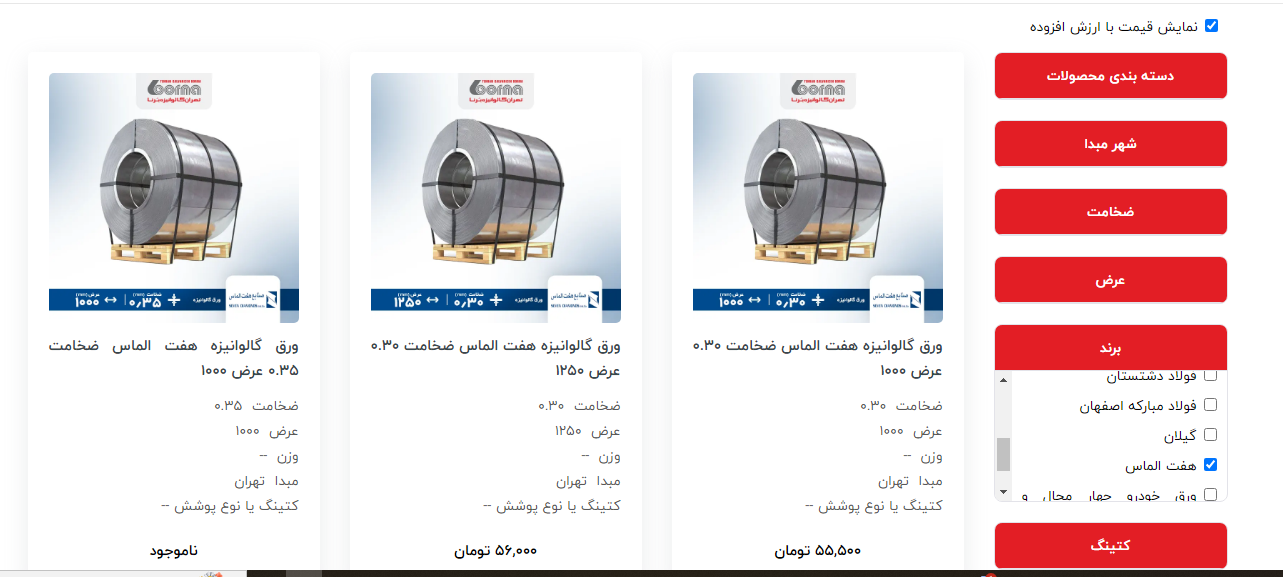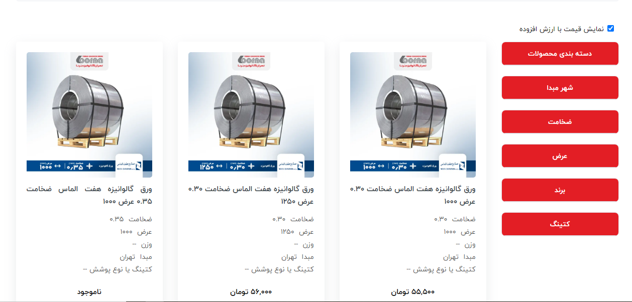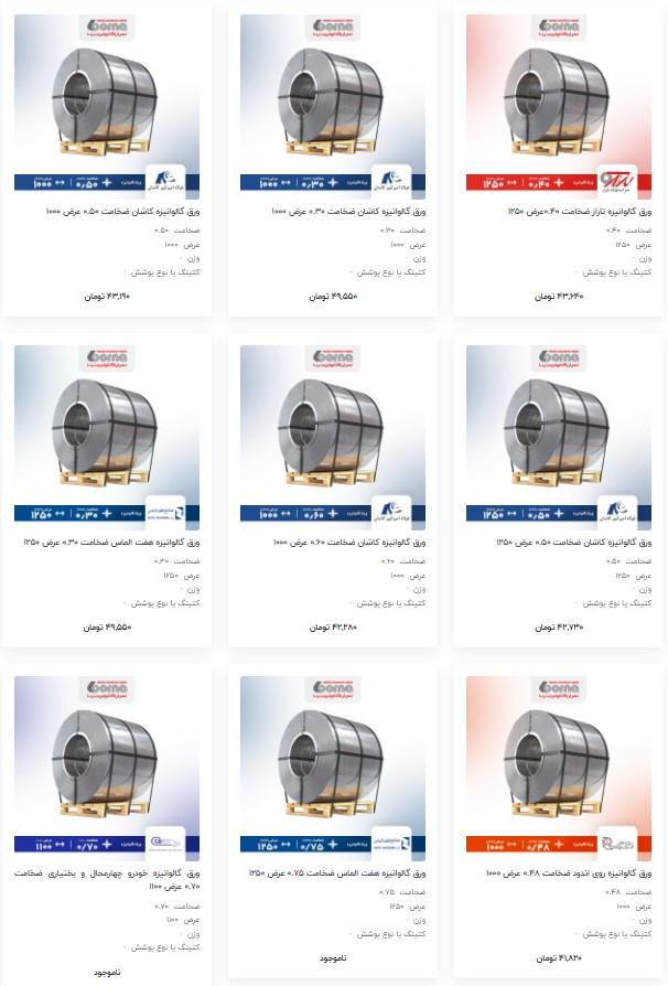 اعلام موجودی ورق گالوانیزه