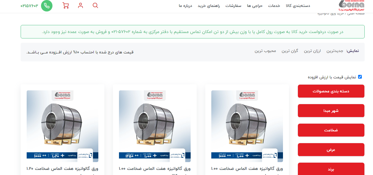 🔺 آهن شاپ با پیشینه شرکت تهران گالوانیزه برنا (لواسانی) یکی از بزرگترین مراجع معرفی و توزیع کننده محصولات ورق های گالوانیزه، رنگی و روغنی در کشور است. 🚫 مشاهد ...