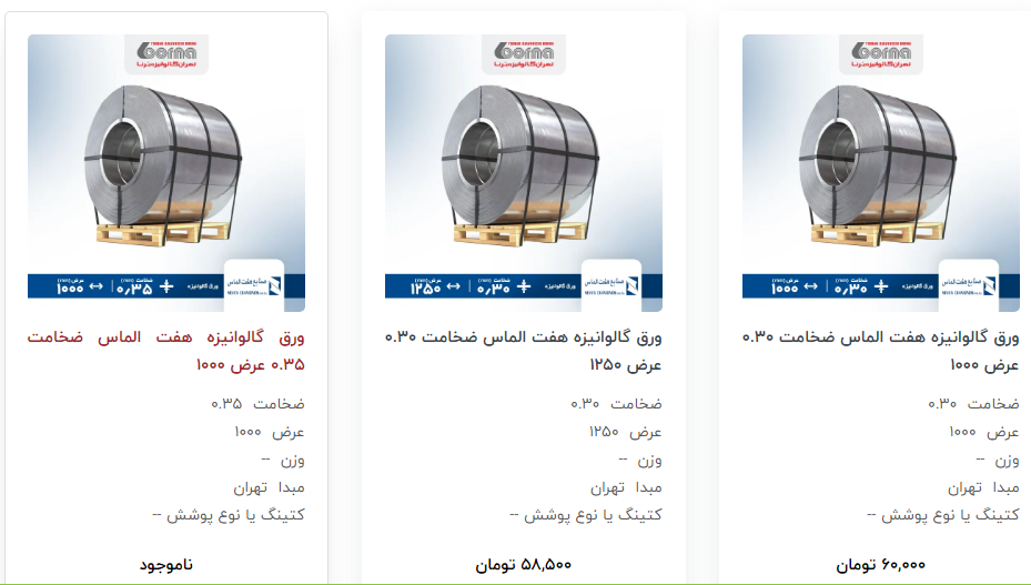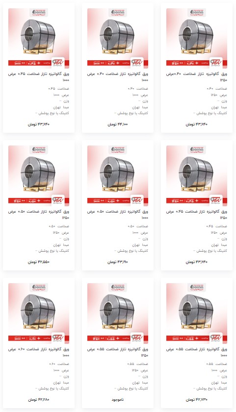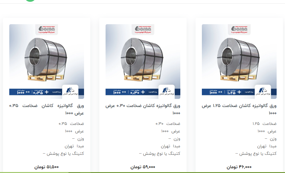 #تهران_گالوانیزه_برنا 🔺 فروش ویژه کالاهای زیر: 0/40 عرض 1250 کاشان 0/45 عرض 1250 کاشان 0/70 عرض 1250 کاشان 0/80 عرض 1250 کاشان 1/00 عرض 1250 کاشان 0/37 عرض 1 ...