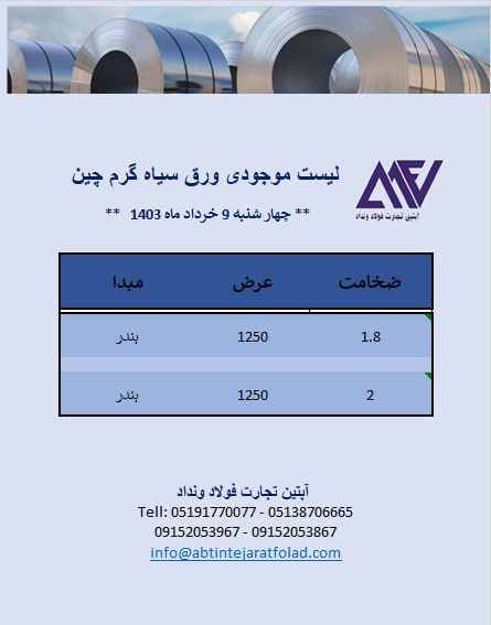 اعلام موجودی ورق گرم (سیاه)