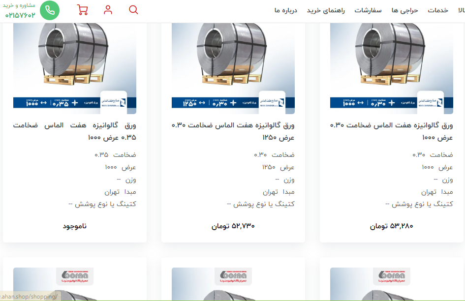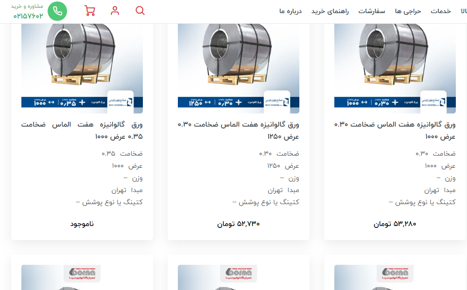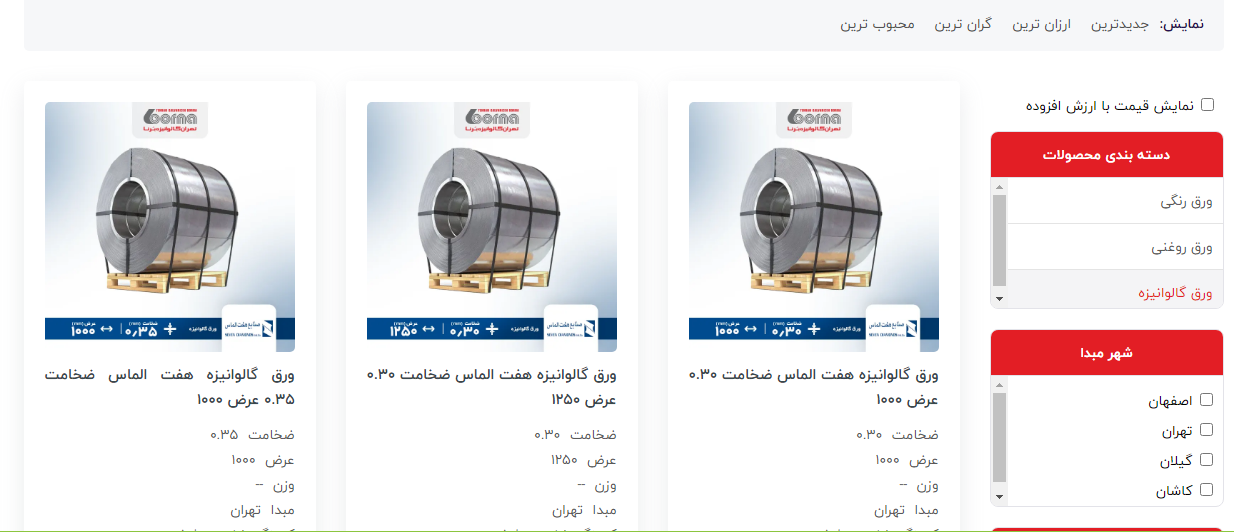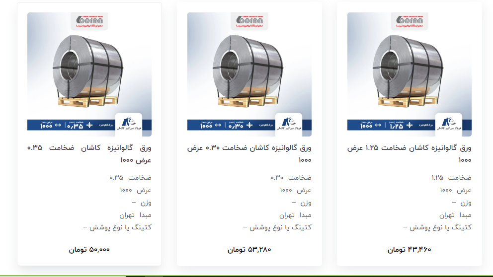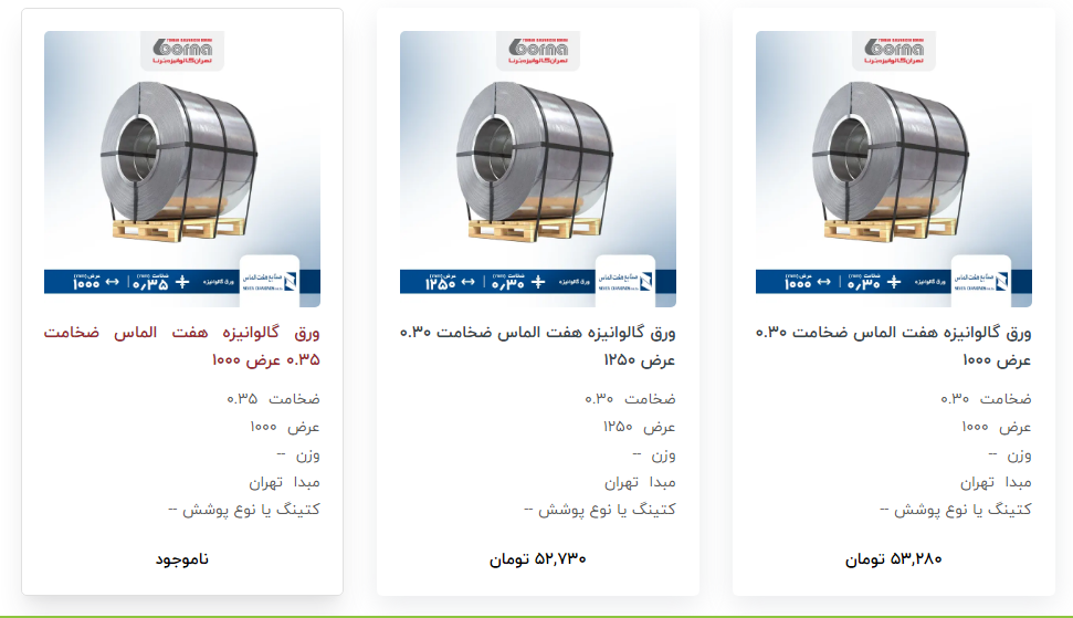 اعلام موجودی ورق گالوانیزه