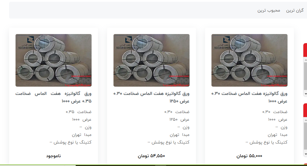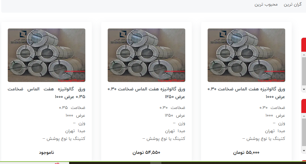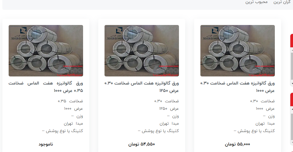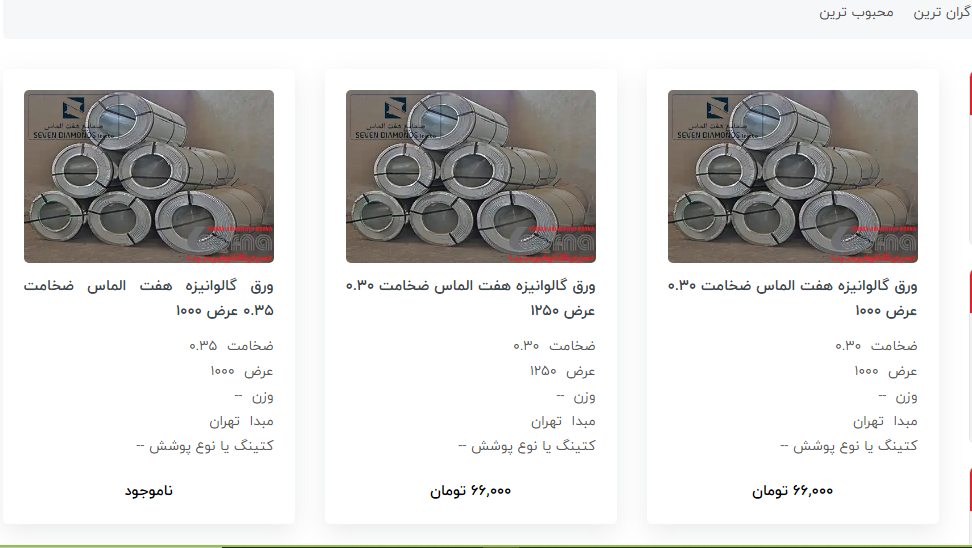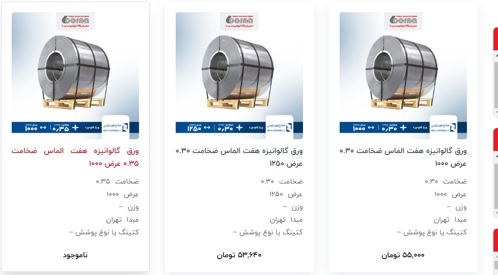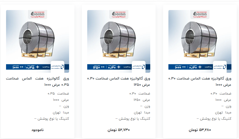 اعلام موجودی ورق گالوانیزه