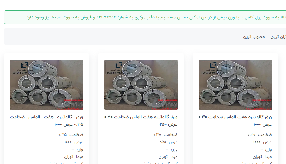 #تهران_گالوانیزه_برنا 🔺 فروش ویژه کالاهای زیر: 0/40 عرض 1250 کاشان 0/45 عرض 1250 کاشان 0/70 عرض 1250 کاشان 0/80 عرض 1250 کاشان 1/00 عرض 1250 کاشان 0/37 عرض 1 ...
