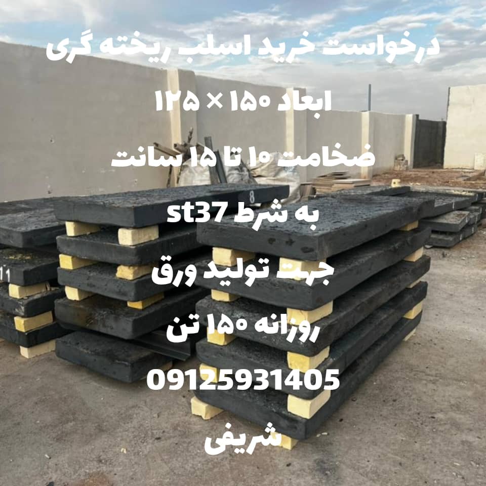 اسلب ریخته گری ابعاد 150*125 ضخامت 10 تا 15 سانت به شرط ST37 جهت تولید ورق روزانه 150 تن خریداریم.