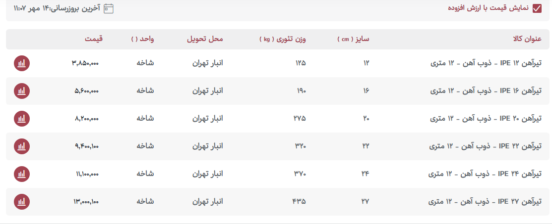 🗓دوشنبه 29 مرداد ماه 1403 لیست #قیمت_تیراهن 🔹تیرآهن 12 ذوبی: 3.770M تومان 🔹تیرآهن 14 ذوبی: 4.530M تومان 🔹تیرآهن 16 ذوبی: 5.580M تومان 🔹تیرآهن ...