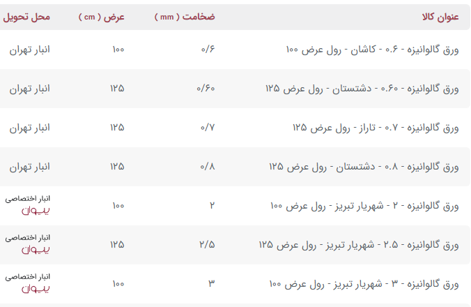 🗓 یکشنبه 19 آذر ماه 1402 👈#ورق گالوانیزه شهریار تبریز ورق 2/00میل عرض 1000 ⬅️ 41000تومان ورق 2/50میل عرض 1000(Z140) ⬅️ 44000 تومان ورق 2/50می ...