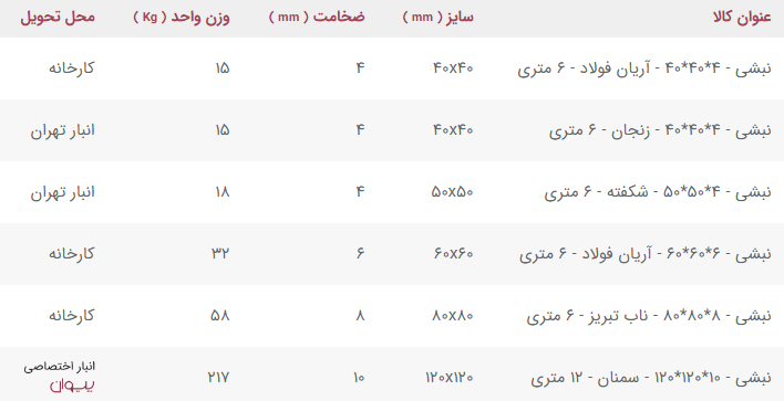 🗓 یکشنبه 19 آذر ماه 1402 👈#نبشی نبشی 10 ضخامت 10- 6متری ⬅️ 23500 تومان نبشی 12 ضخامت 12- 12متری ⬅️ تماس بگیرید نبشی 12 ضخامت 10- 12متری ⬅️ تم ...