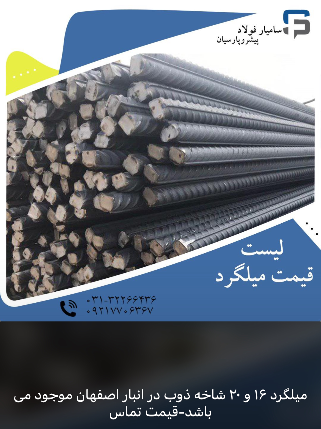 میلگرد ذوب اهن اصفهان سایز ١۶ الی ٢٨ انبار و کارخانه میلگرد خرمدشت ٨الی ٢۵ میلگرد ٢٩ اروند