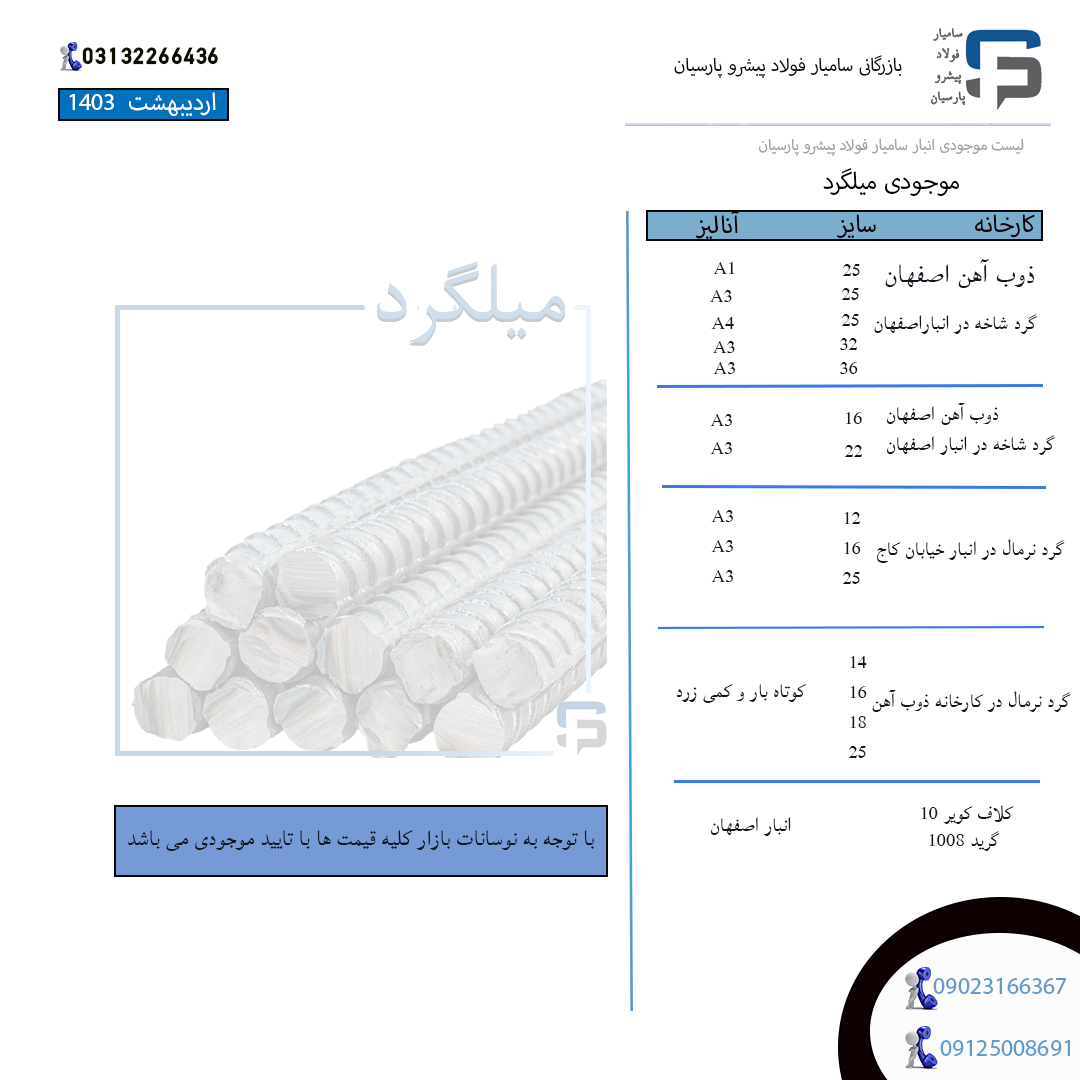 موجودی میلگرد نرمال و شاخه در انبار و کارخانه