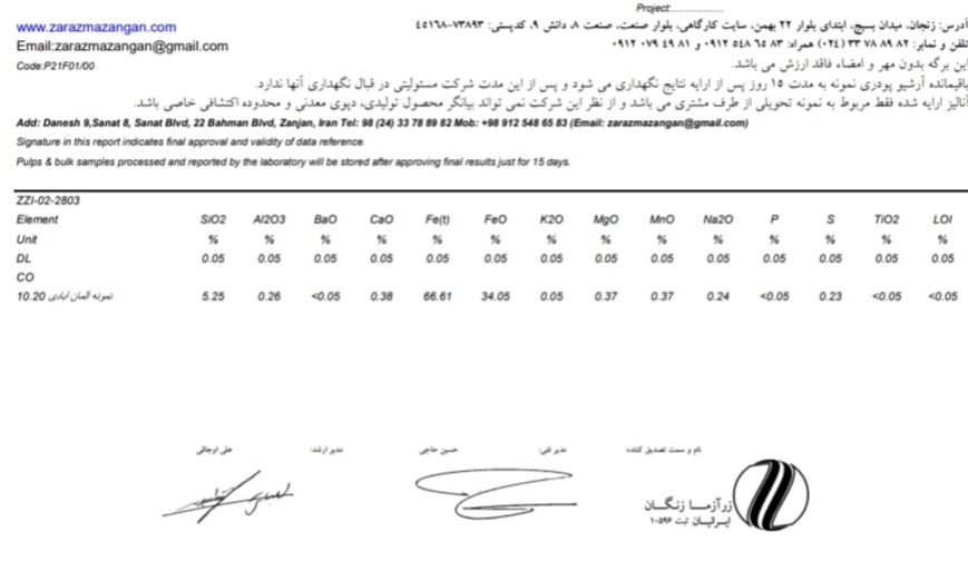 اعلام موجودی کنسانتره هماتیت و مگنتیت