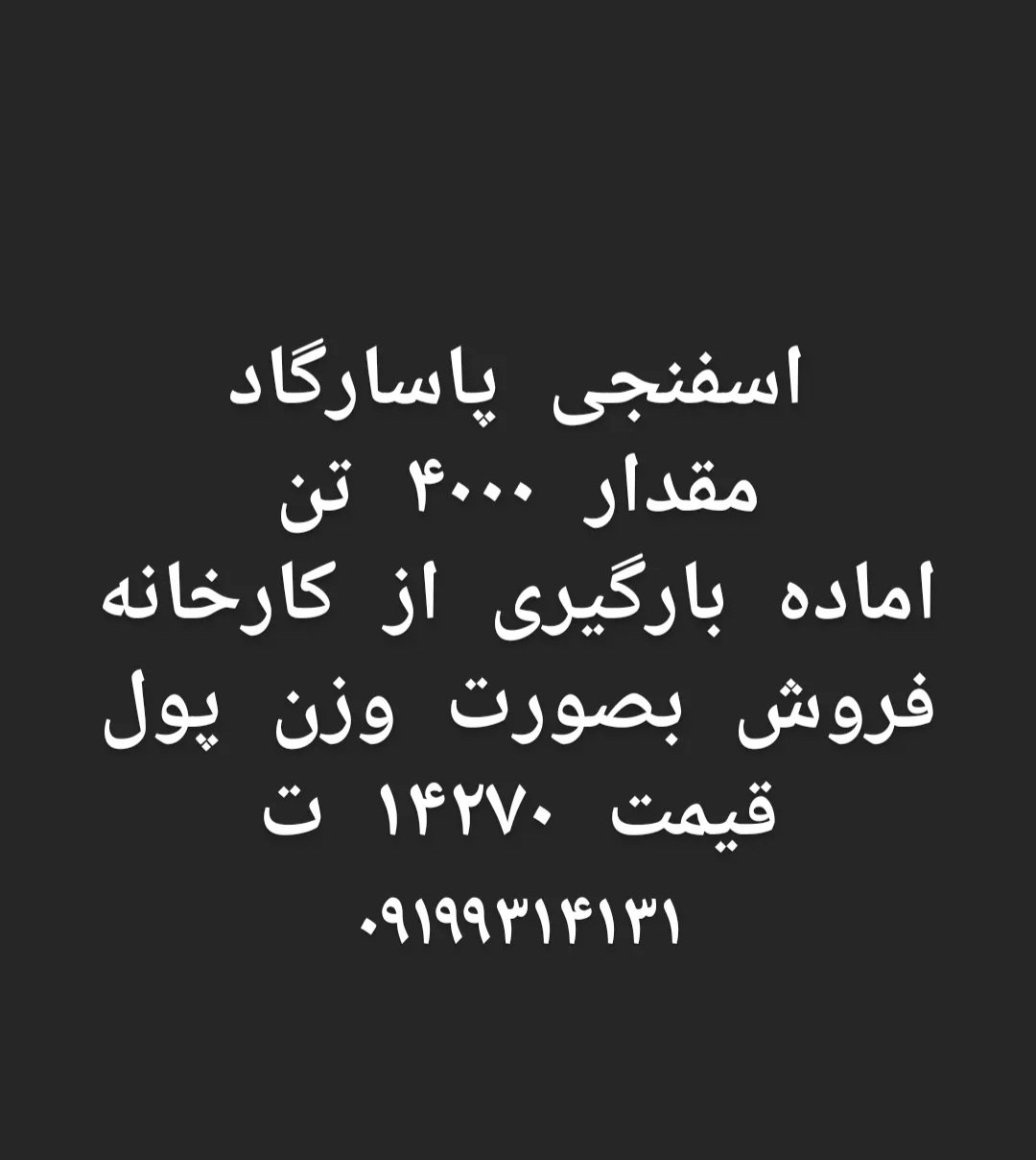 اهن اسفنجی پاسارگاد ۴۰۰۰ تن وزن پول ۱۴۲۷۰ ت