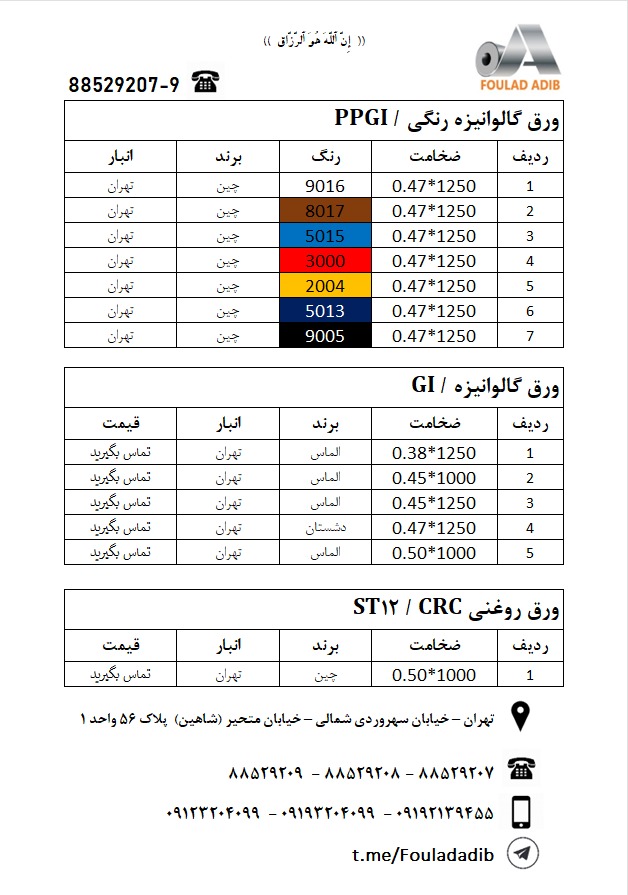 قیمتهای سام فولاد ادیب