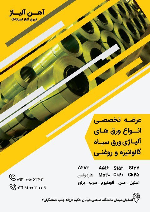 #آهن_آلیاژ آهن و آلیاژ مشاوره کاملاً رایگان در زمینه: 🔧 کاربرد انواع آلیاژها و گریدها 📄 ورقهای استیل باکیفیت ⚙️ ورقهای آلیاژی تخصصی 🪙 ورقهای آلومینیوم، مس، ...