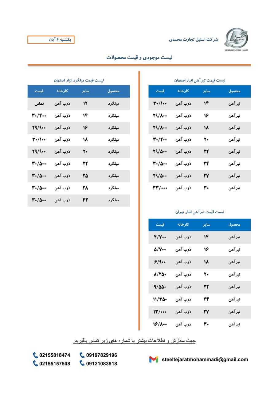 اعلام موجودی تیرآهن انبار اصفهان 7 آبان