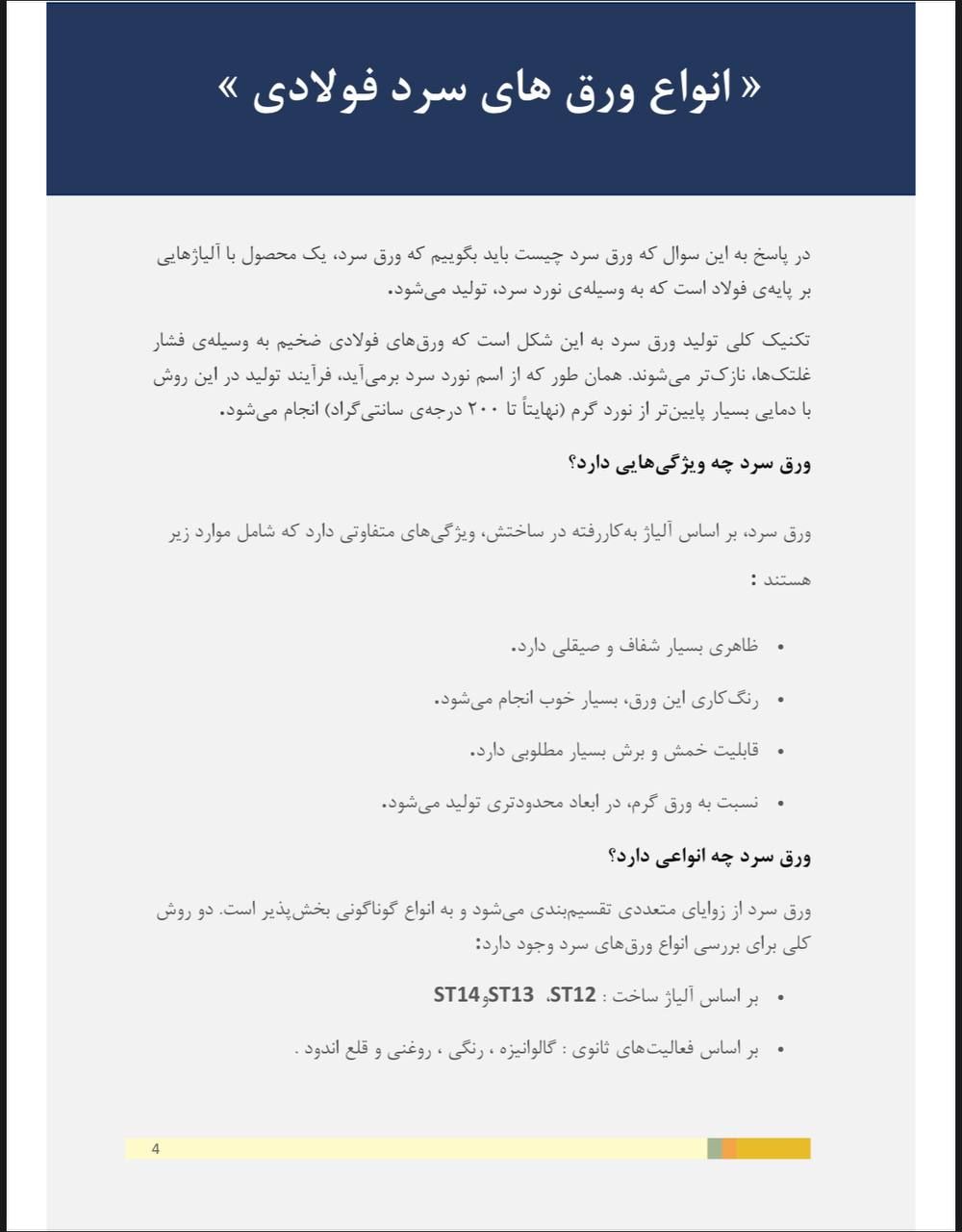 ورق سرد : گالوانیزه ، روغنی ، رنگی ، قلع اندود