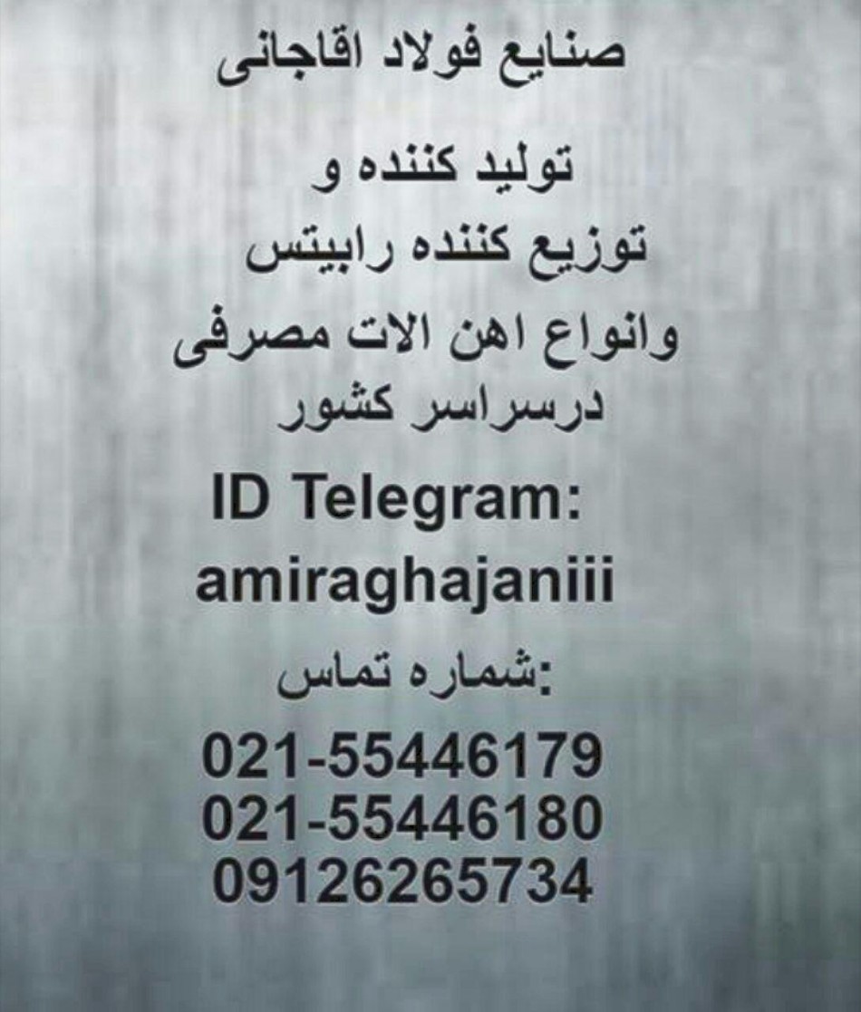 تولید وعرضه انواع رابیتس ۹ ۱۱۱۳ ستون شماره تماس. ۵۵۴۴۶۱۷۹. ۵۵۴۴۶۱۸۰ ۰۹۱۲۶۲۶۵۷۳۴