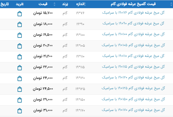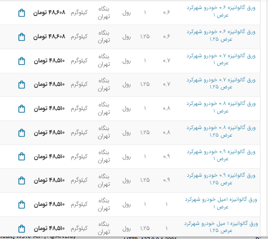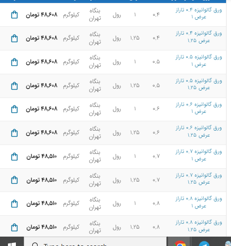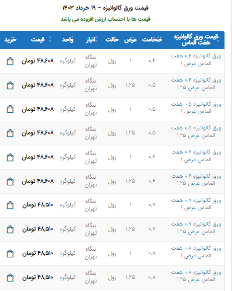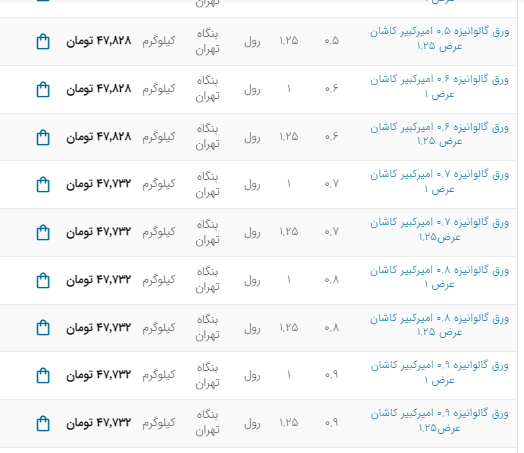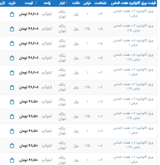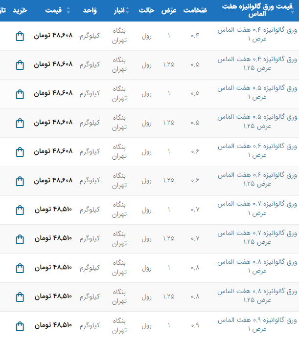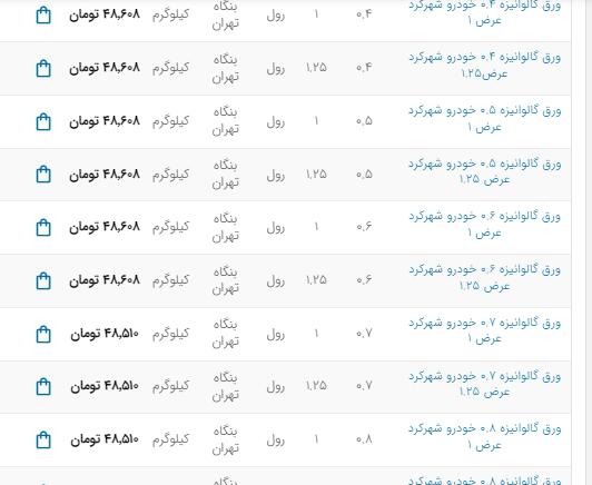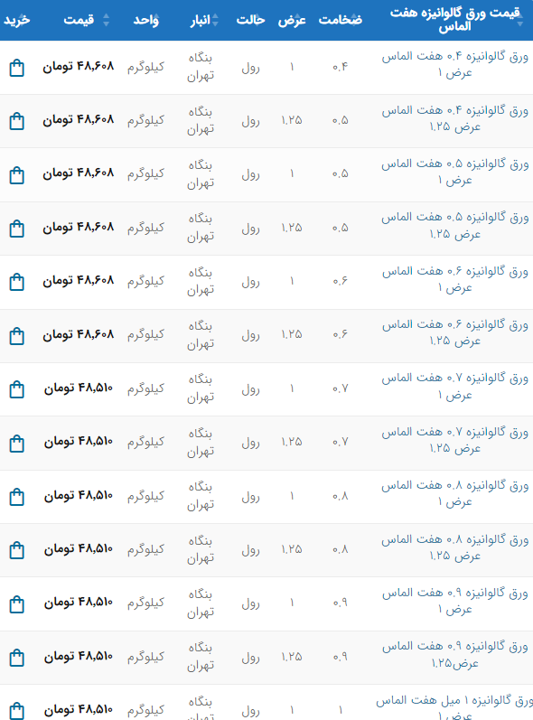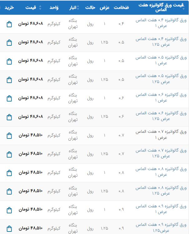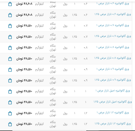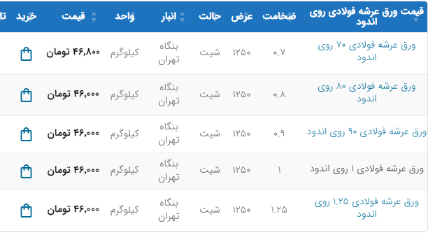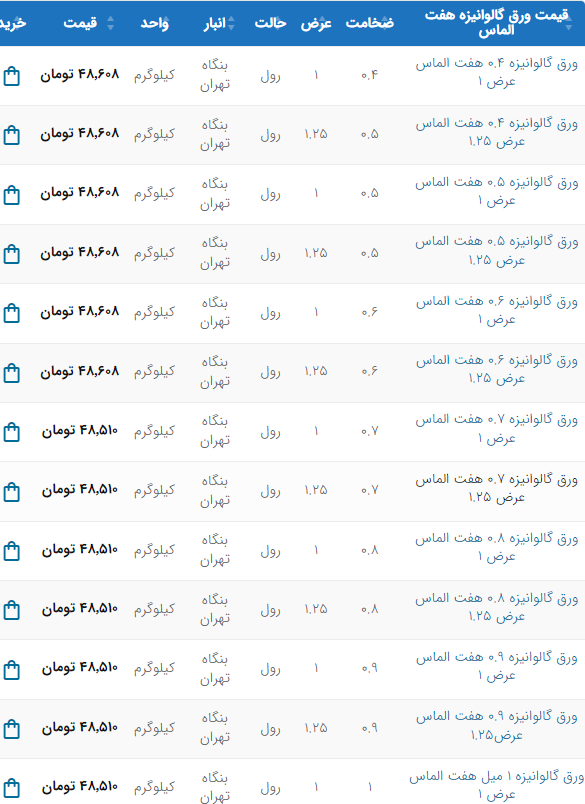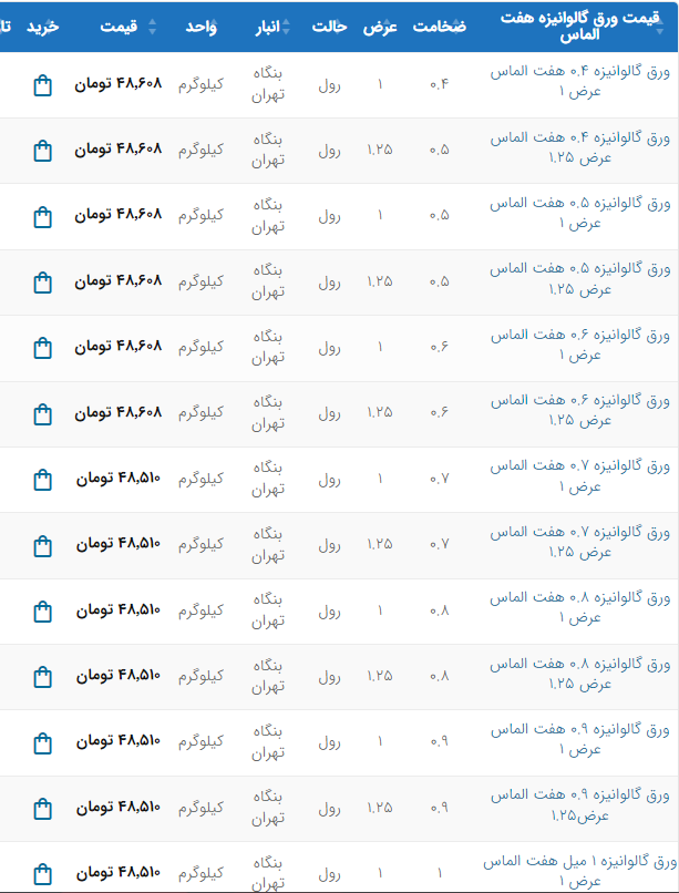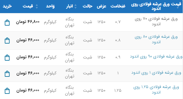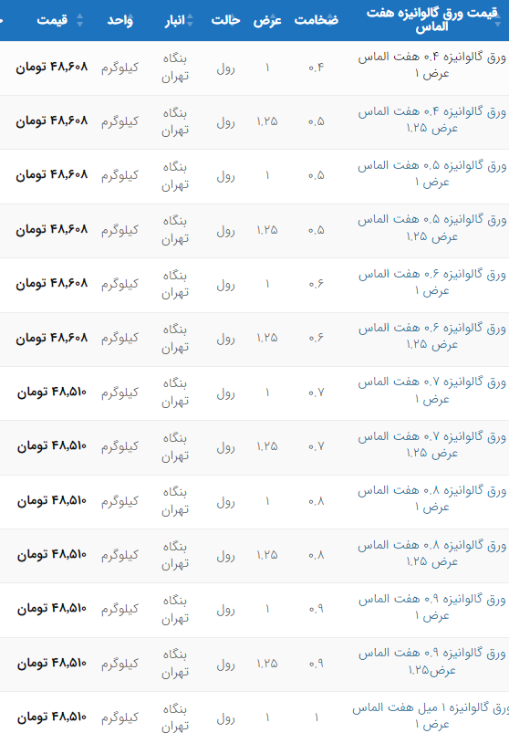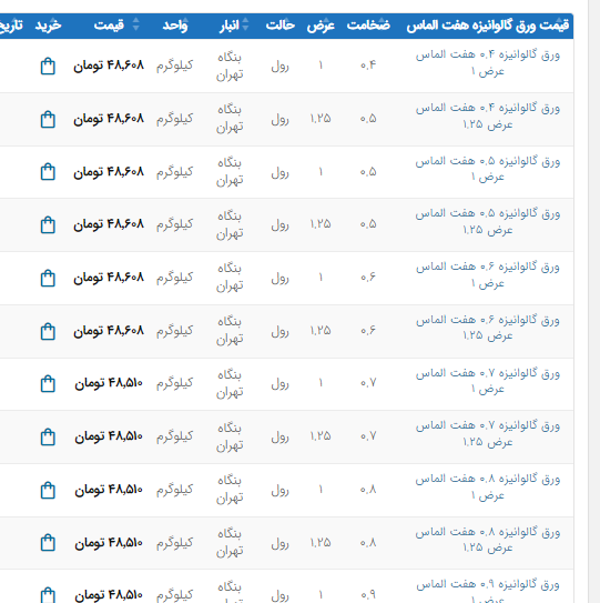 اعلام موجودی تولیدات و مصنوعات فلزی