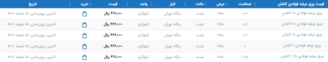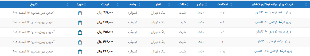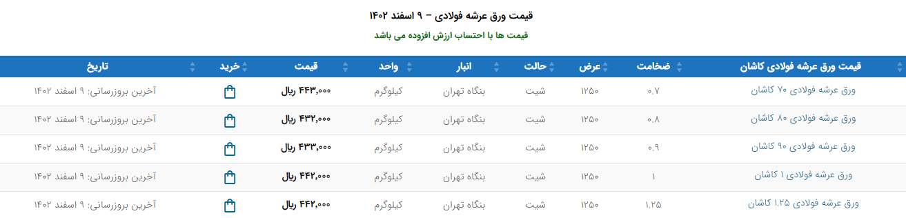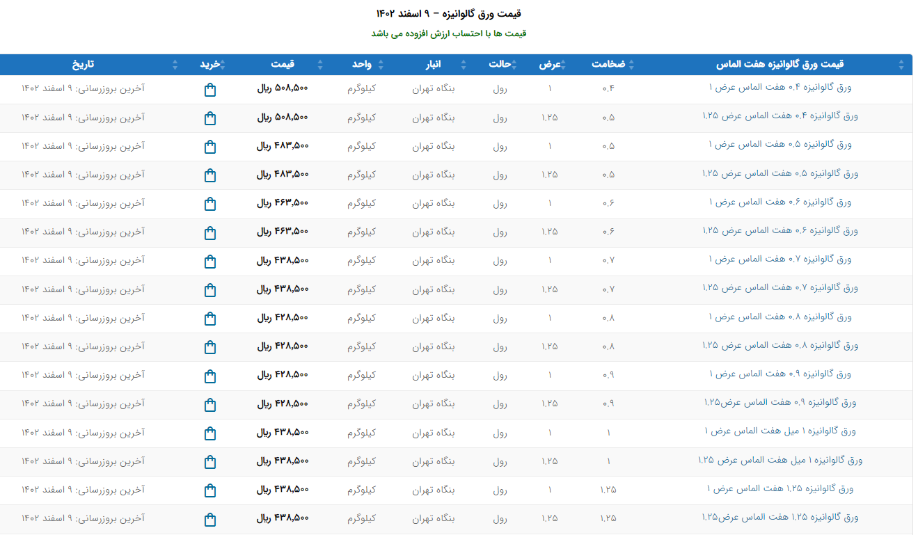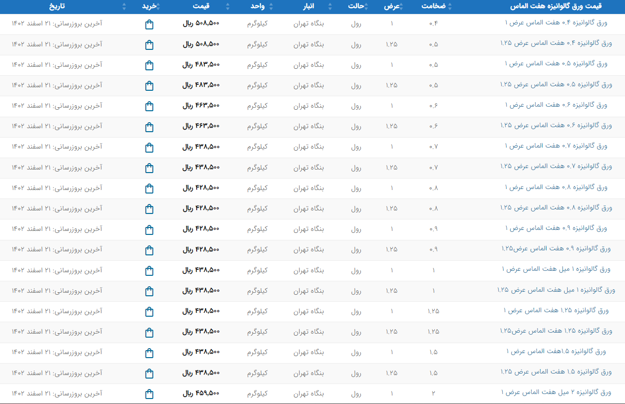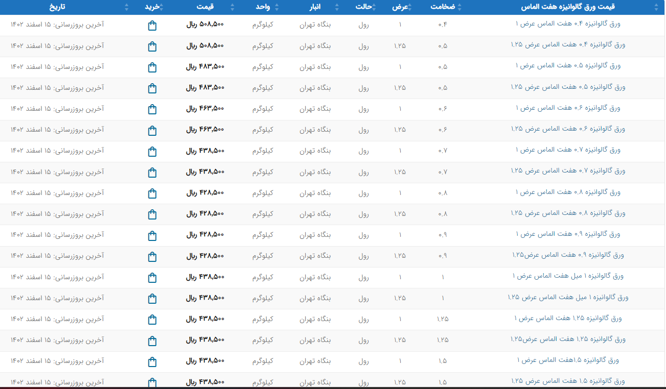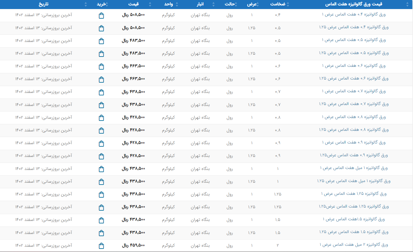 اعلام موجودی ورق گالوانیزه