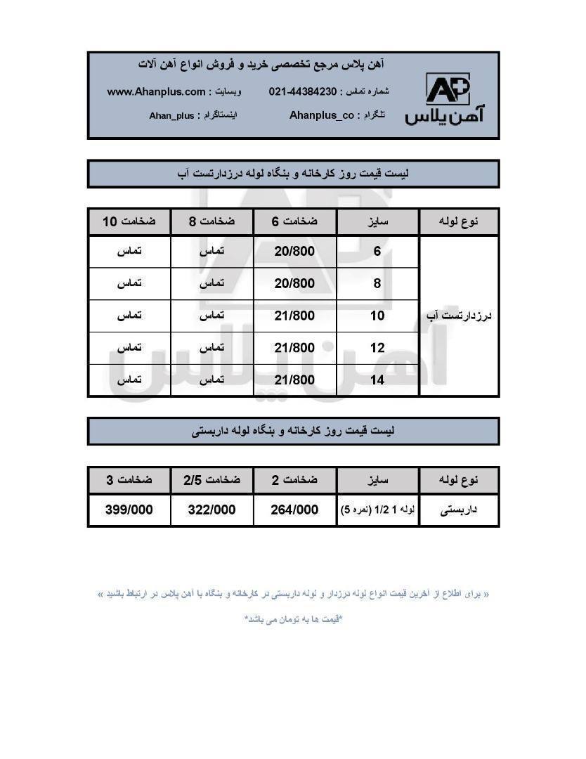 #قیمت_لوله_درزدار_تست_آب #قيمت_لوله_داربستى 📱@ahanplus_co 📎 اطلاع از قیمت روز کارخانجات 🔻 🌐 www.ahanplus.com ✔️ جهت تایید قیمت و موجودی با آهن پلاس در ارتبا ...