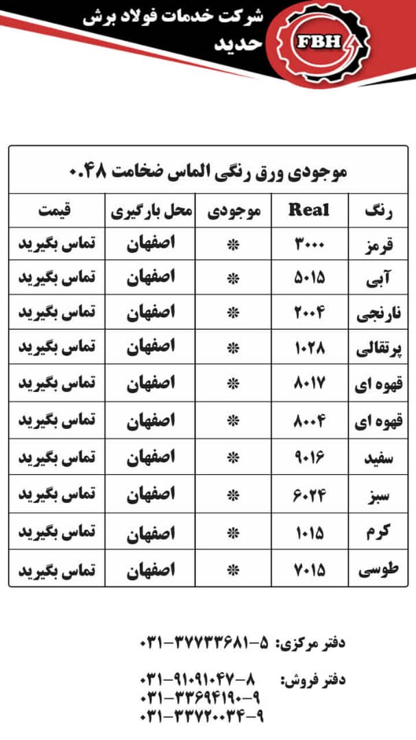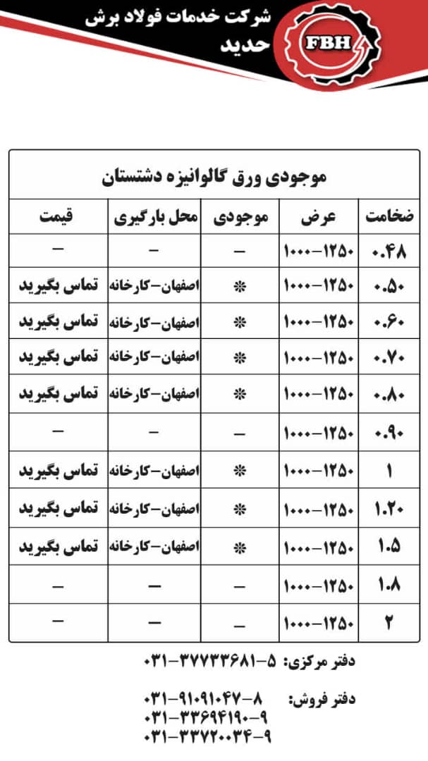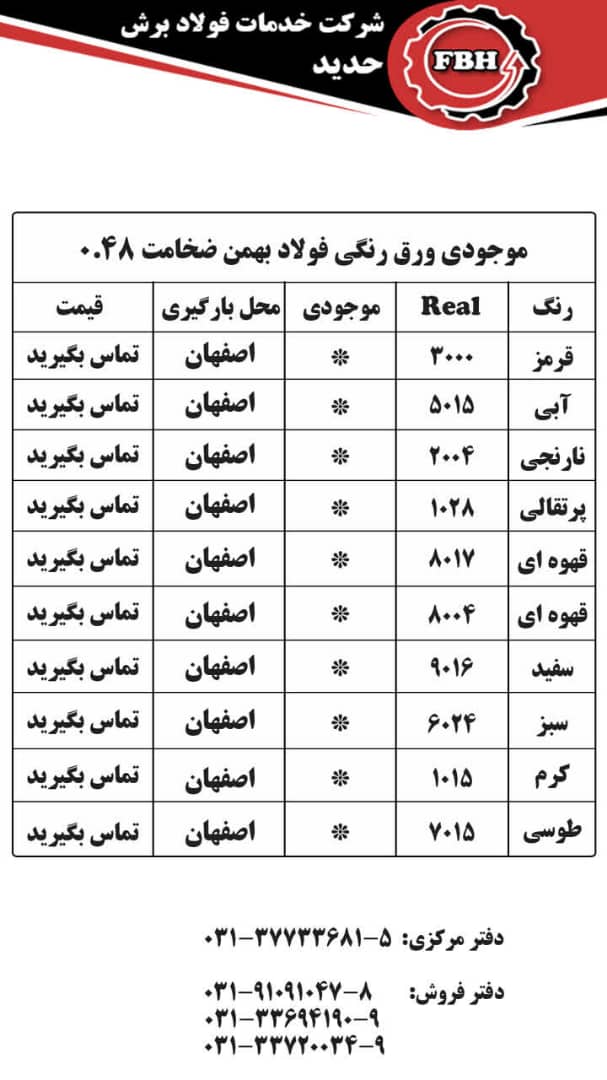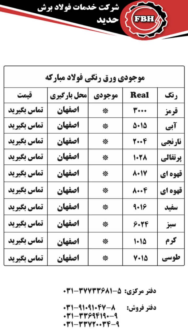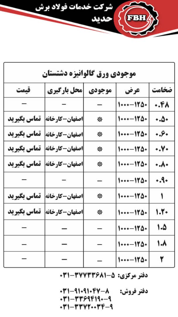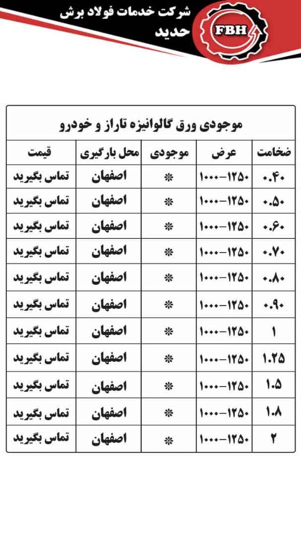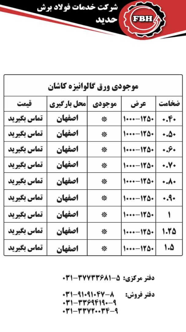 قیمتهای شرکت خدمات فولاد برش حدید