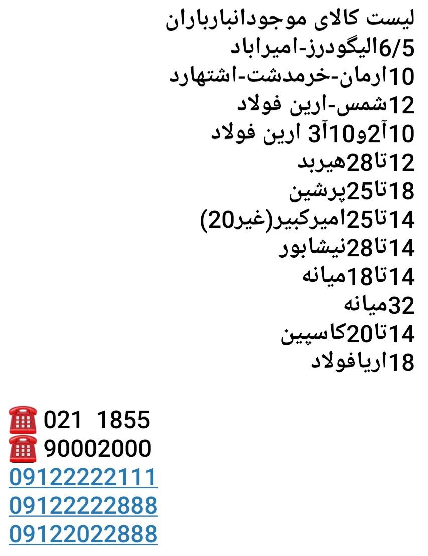 💠 #شرکت_آرتا_تجارت_افق_باران #امیر_آباد 6/5امیراباد #الیگودرز 6/5الیگودرز #شمس 12شمس #آرمان_آسیا 10ارمان #خرمدشت 10خرمدشت #آرین_فولاد 10ارین فولاد 12ارین فولا ...