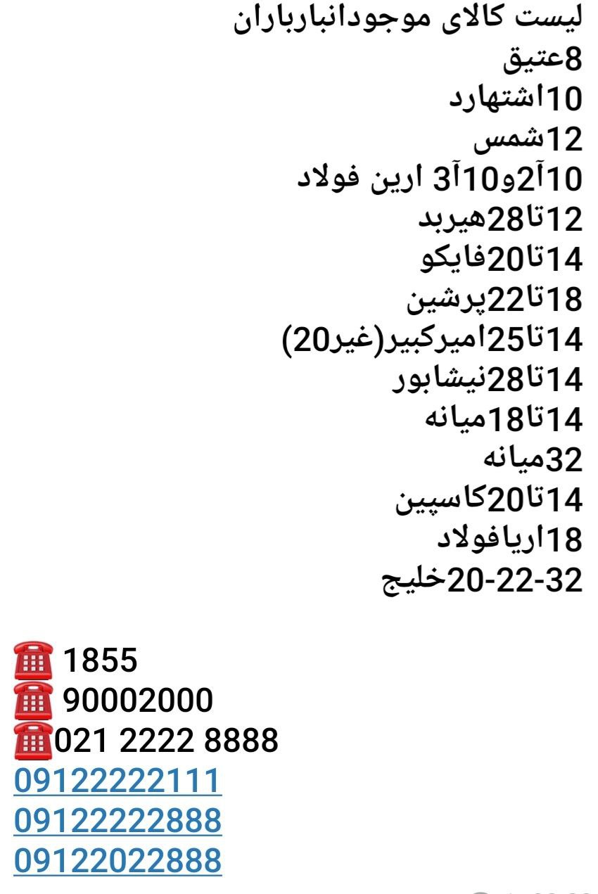 #فولاد_باران #شرکت_آرتا_تجارت_افق_باران فروش تخصصی #میلگرد در انبار تهران و کارخانه ☎️ 1855 ☎️ 90002000 ☎️ 021 2222 8888 📱 09122222111 📱09122222888 📱09122022888 ...