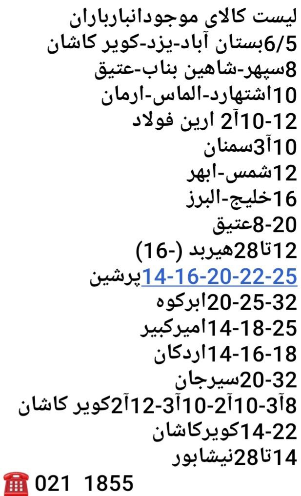 #فولاد_باران ↖️کلیه اجناس فوق موجوددرانبار باران میباشد↖️ #شرکت_آرتا_تجارت_افق_باران فروش تخصصی #میلگرد در انبار تهران و کارخانه ☎️ 021 1855 ☎️ 90002000 1402 ...